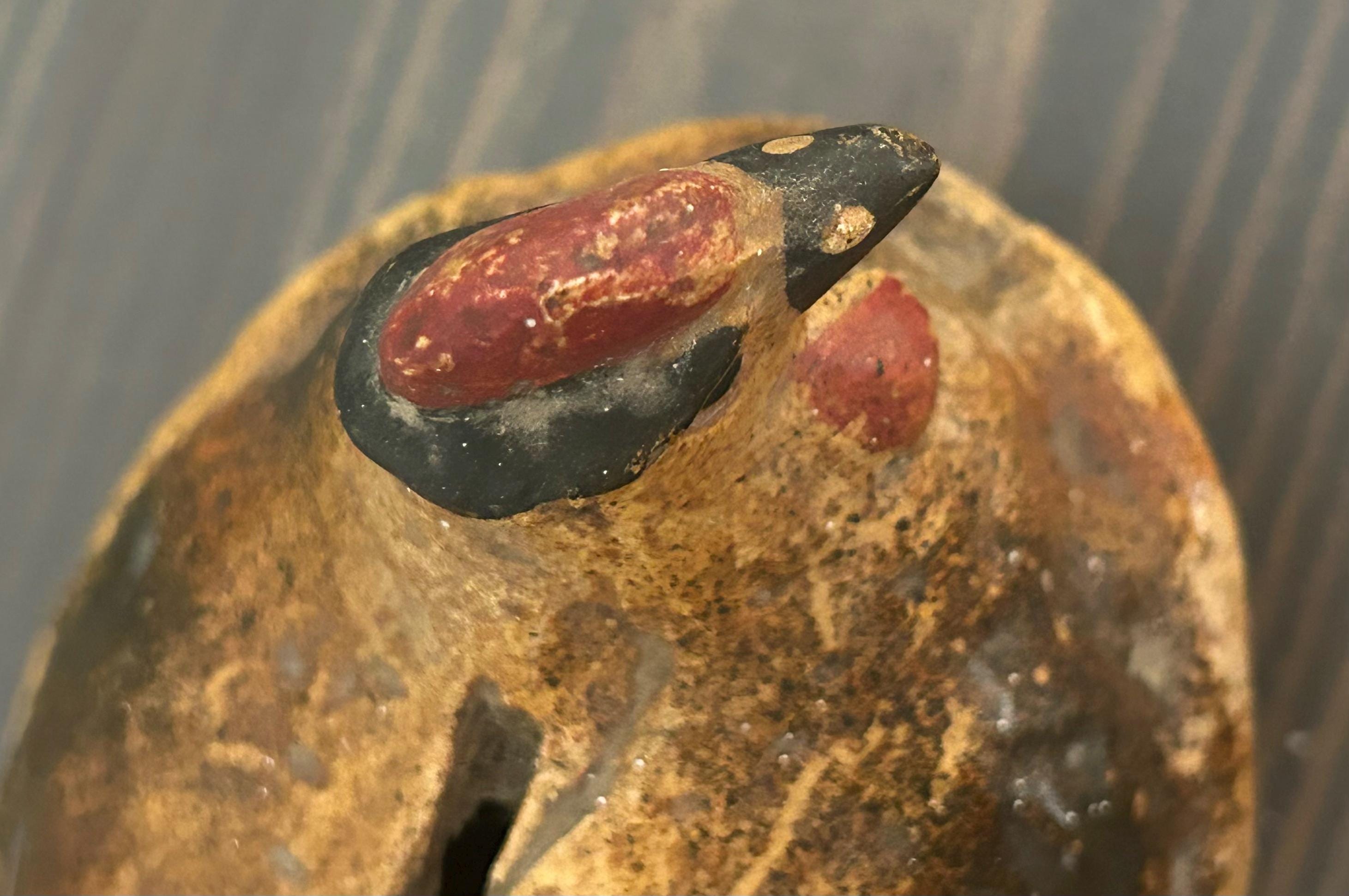 *****Condition: Please note there are no cracks, but there are some areas of paint loss, white specks of paint, smudges of paint (Please see the next to last photo for the green paint on the nest.), and rough areas from the molding process. There also appears to be a small hole, measuring 1/16" on the tail. (Please see the last photo.), I don't believe this is damage that happened post-production but possibly an imperfection owing to the presence of an air bubble during the molding process. Still, I cannot be certain. Finally, the piece is well-worn and vintage. Please examine the photos carefully using the zoom function and do let me know if you'd like more as I'll be happy to oblige.