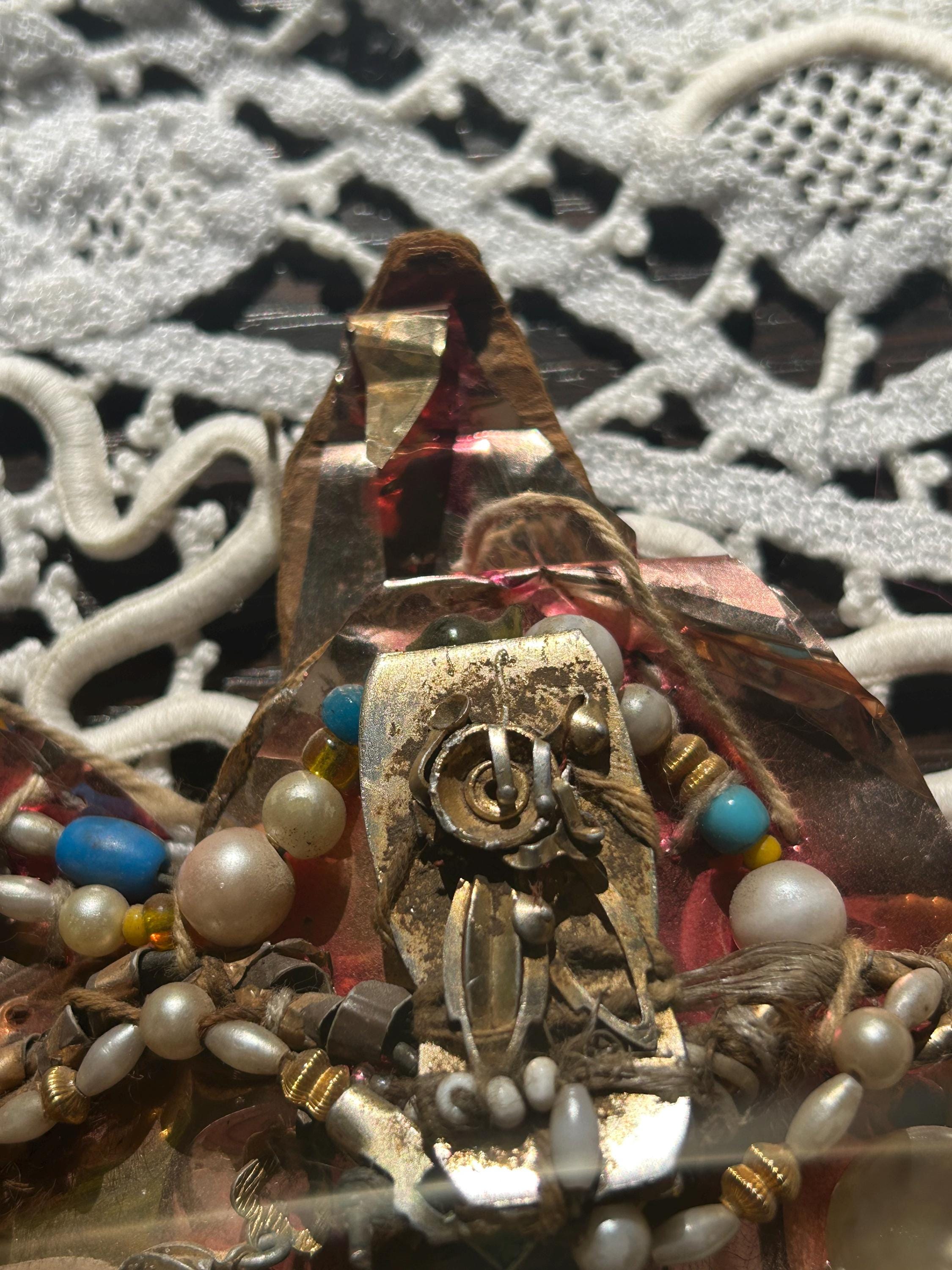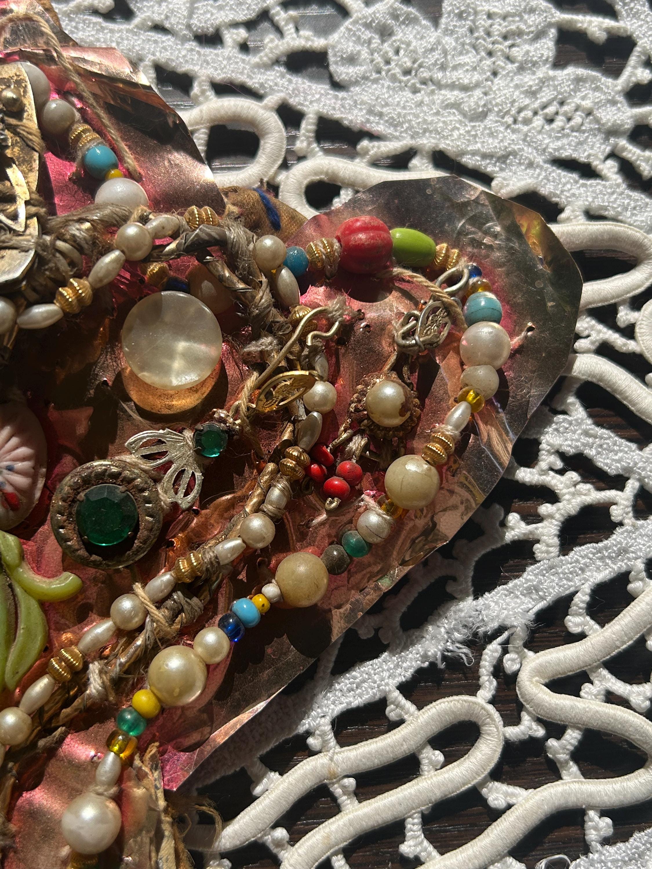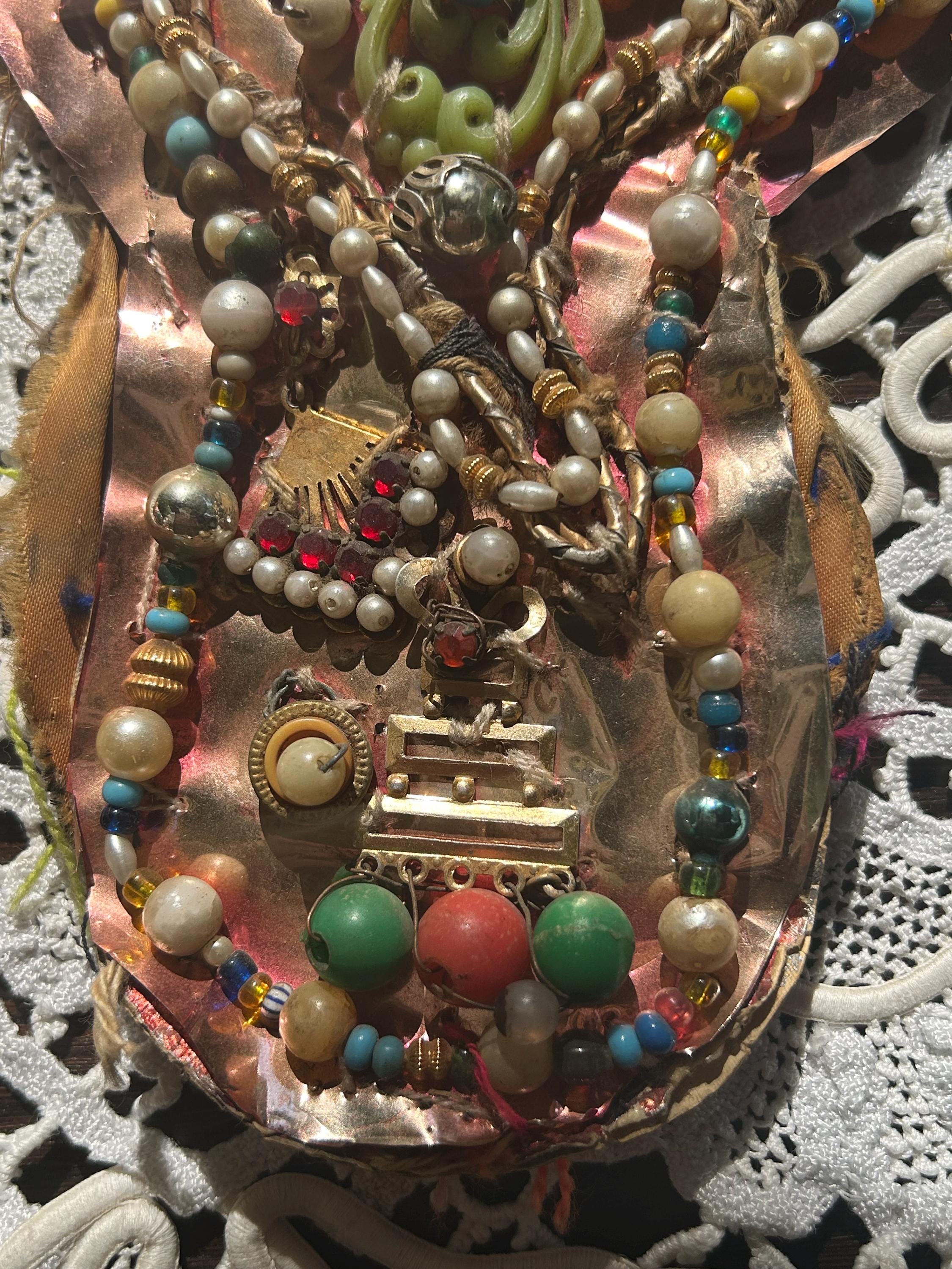 *****Condition: Please note the piece has faded and there is some creasing to the paper. I've not examined every single charm and bead, but I've tried to show an accurate representation through the photos.