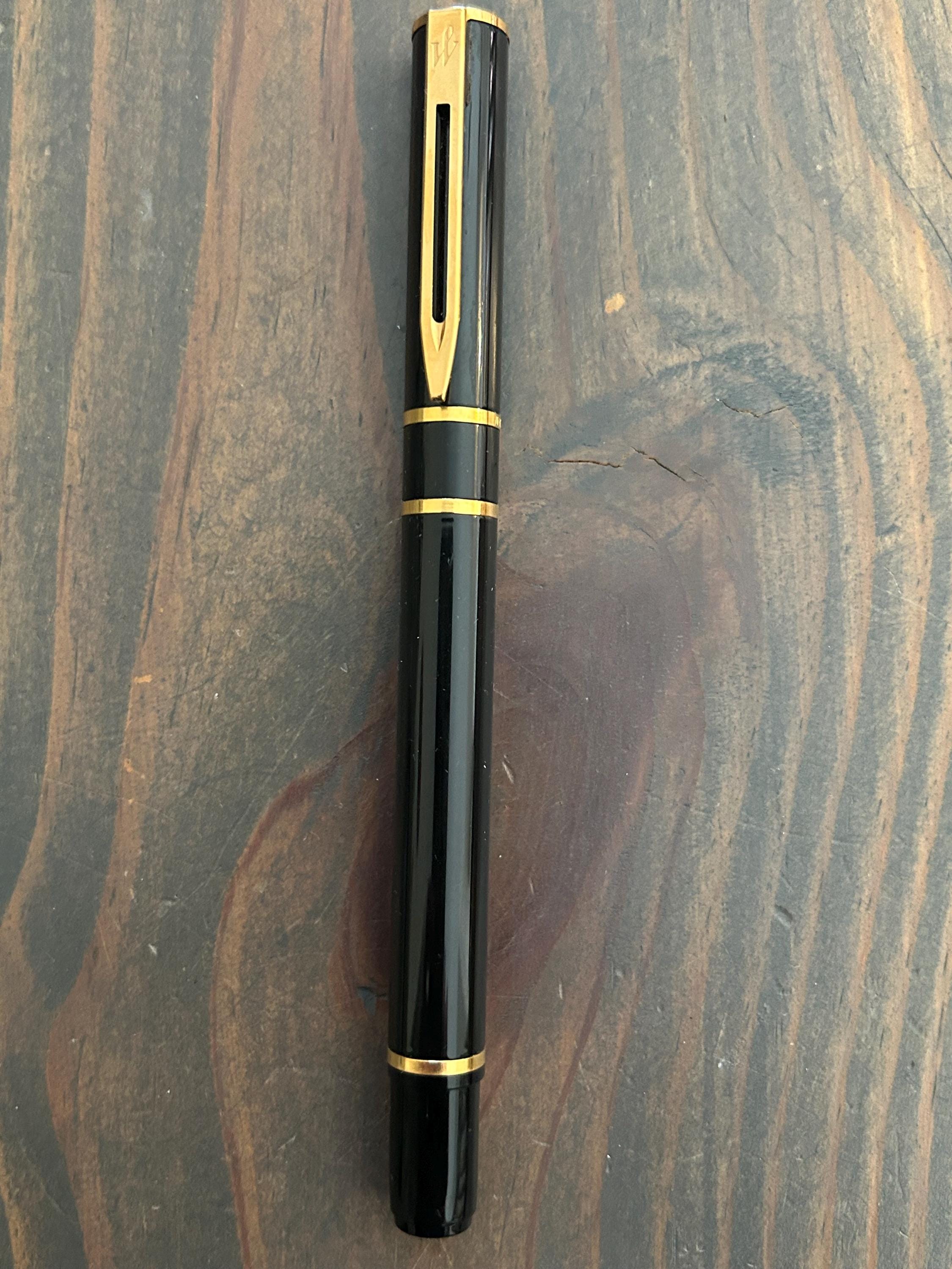 This Waterman fountain pen is the Laureat I model, produced circa mid-1980s-1990s. The Laureat II was produced thereafter and the line discontinued around 2000. Thank you to http://captainchang.com/pens/waterman.html for the very helpful information.