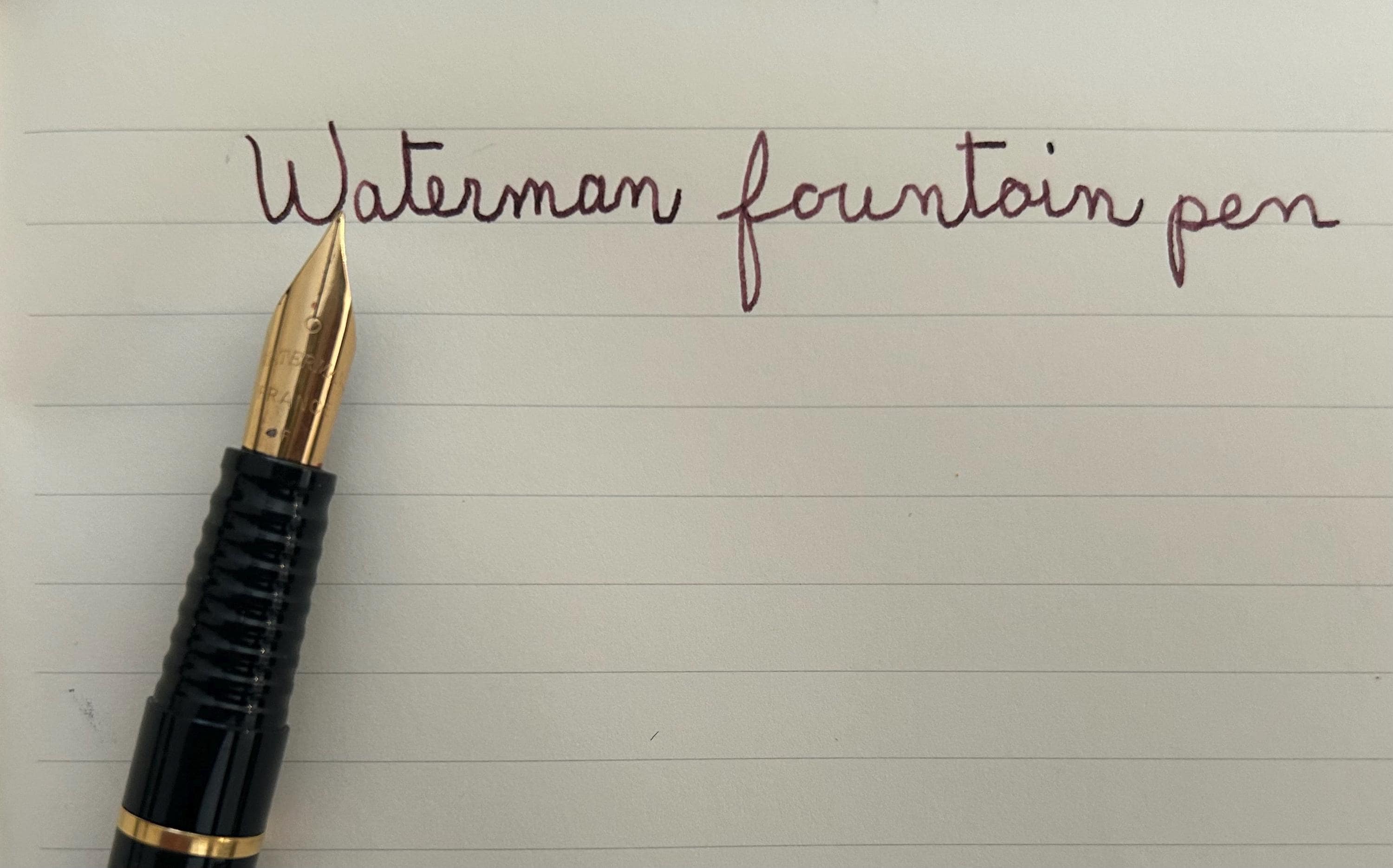 The second photo shows a writing sample when the pen was inked with the Waterman red cartridge.