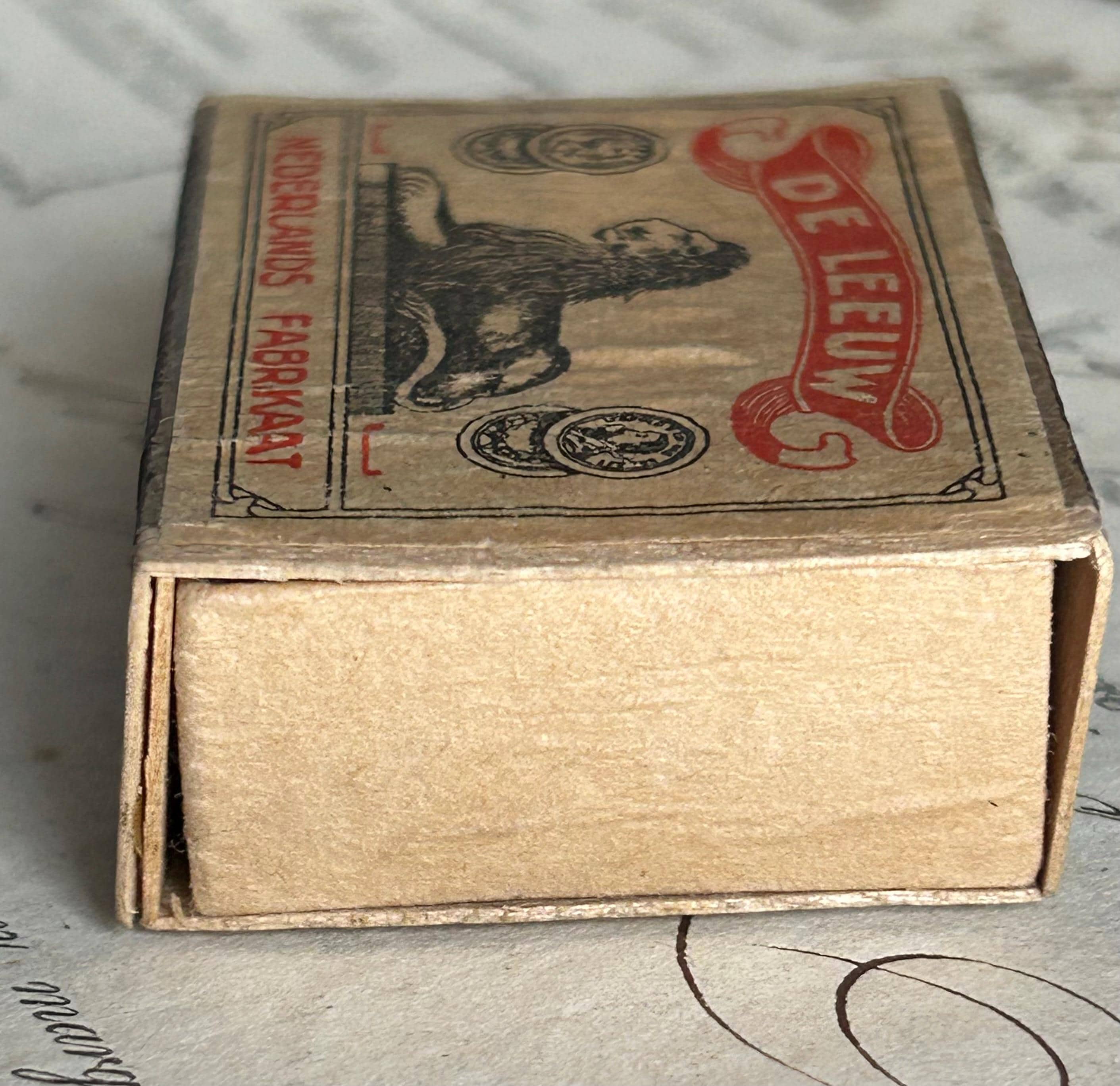*****Condition: Please note the label on the front of the matchbox has wrinkling, probably owing to the age of the box and the elements to which it has been exposed over time. Also there is wear to the striking surfaces, and in the interior, there is a bit of extraneous paper, as seen most clearly in the ninth, tenth, and eleventh photos.