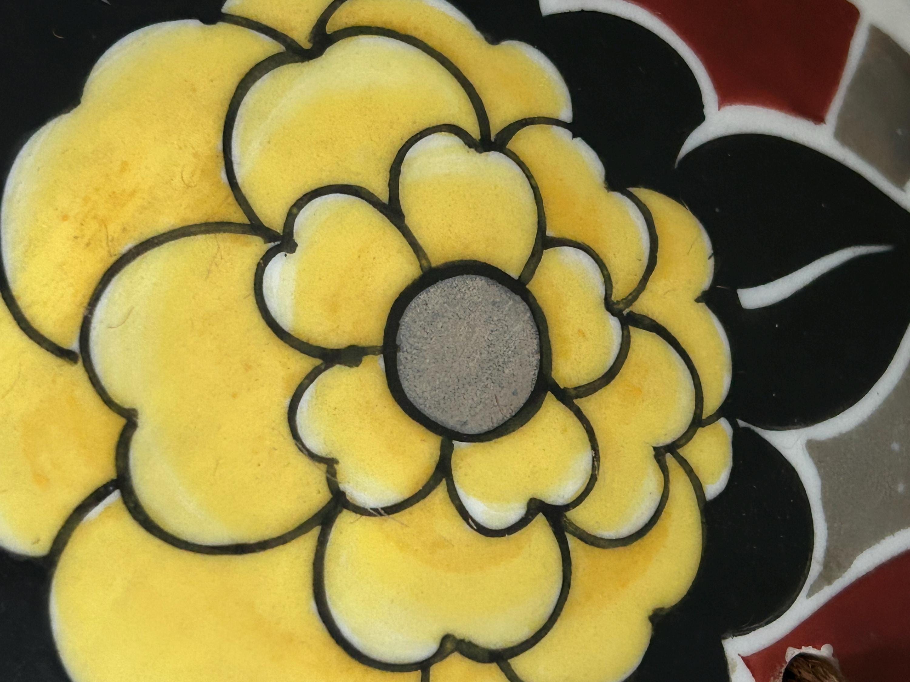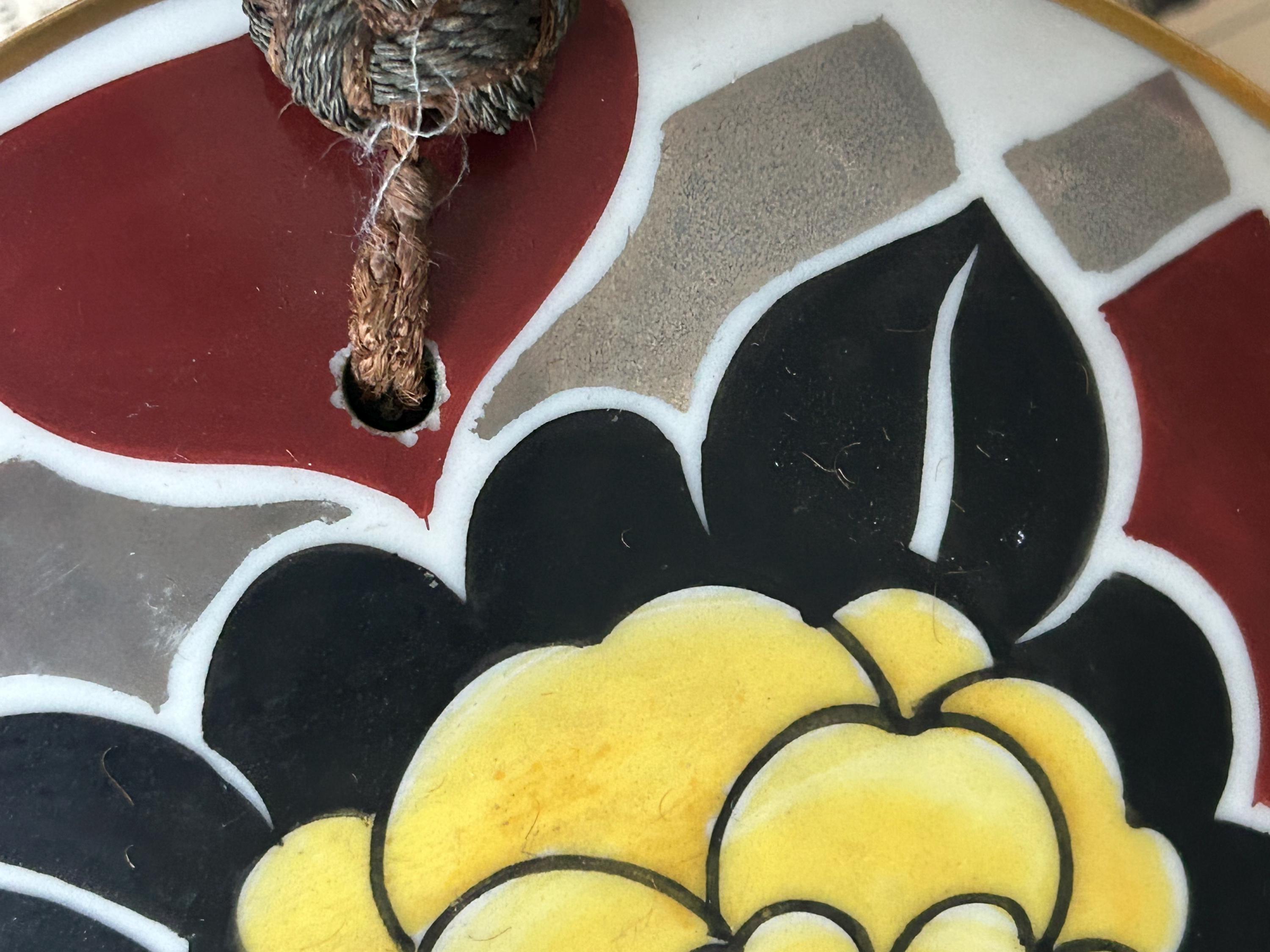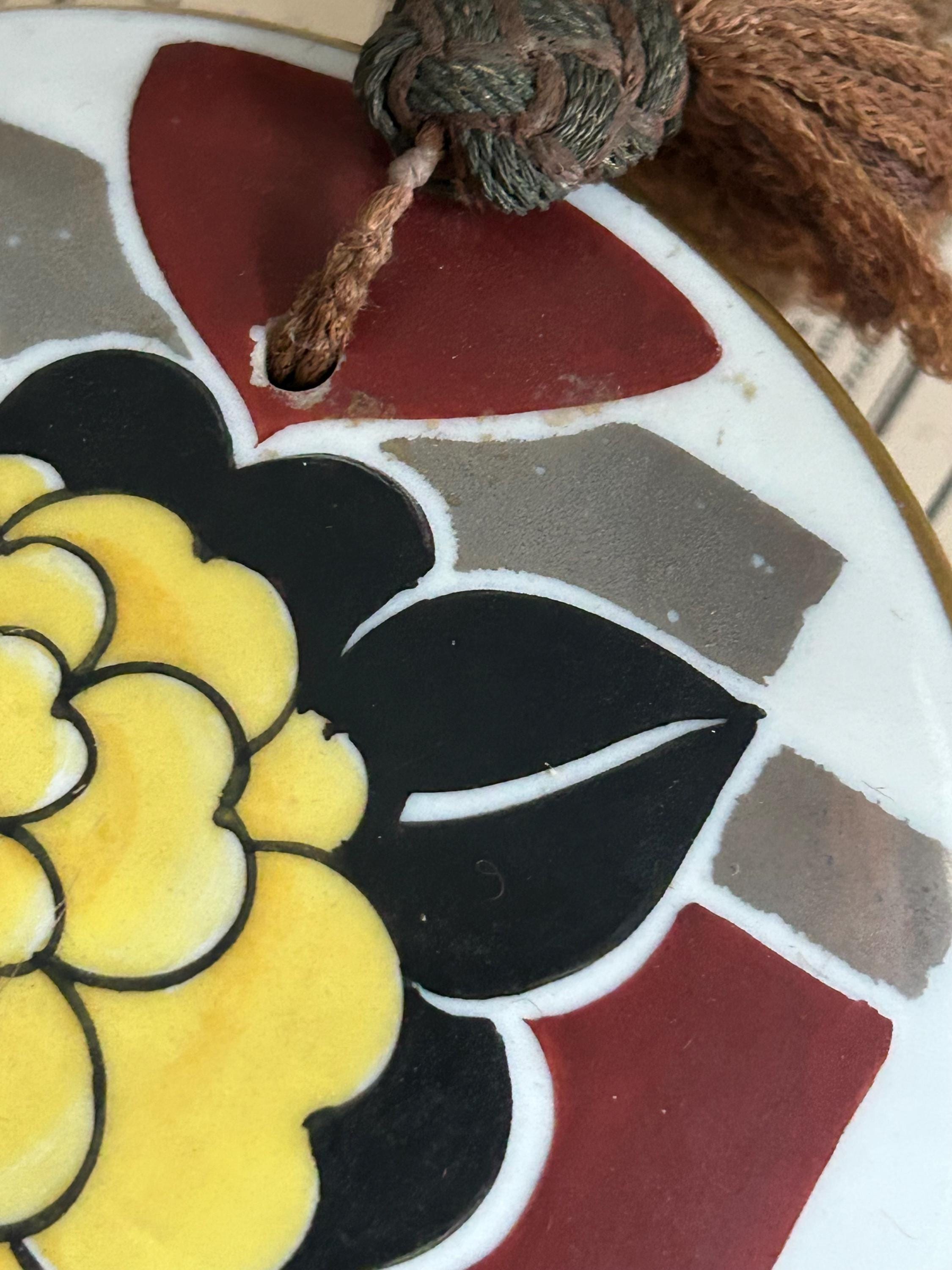 *****Condition: Please note there is wear to the paint on the lid of the box. This wear is seen around the holes through which the tassels are anchored and on some of the floral design. There is also wear to the tassels. The outer edge of the opening of the box has wear, and there appears to be some damage to the interior of the lid, particularly around its edge, as seen in the last three photos. The underside of the box also has wear commensurate with age and use. Please examine all of the photos carefully and do let me know if you need more as I'll be happy to oblige.