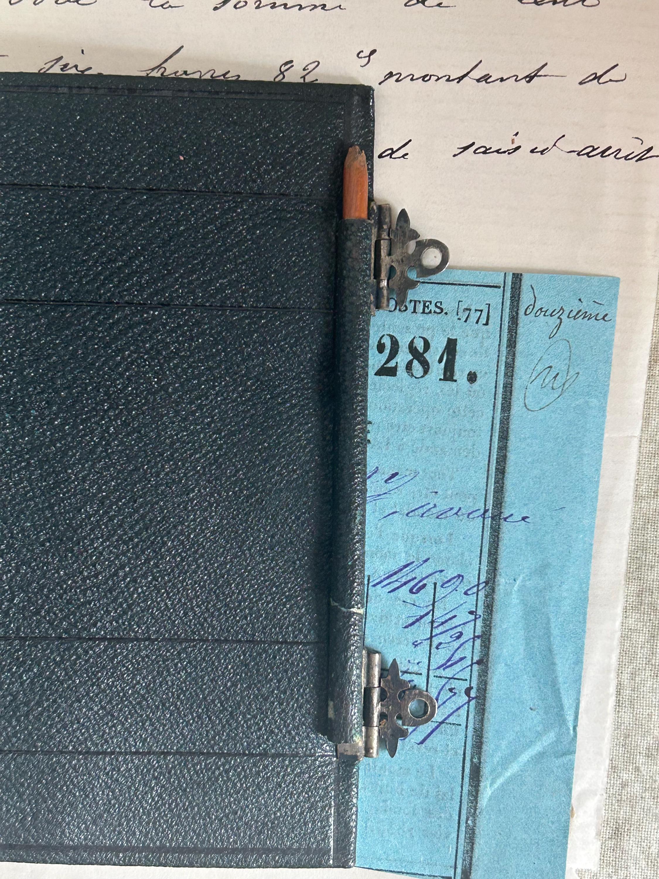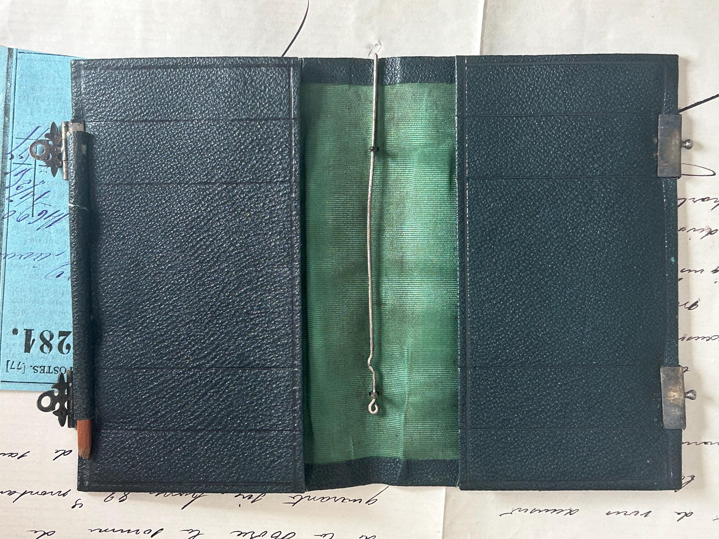 The carnet de bal was used to keep track of dance partners and the aide-memoire is basically a notebook in which to take notes.