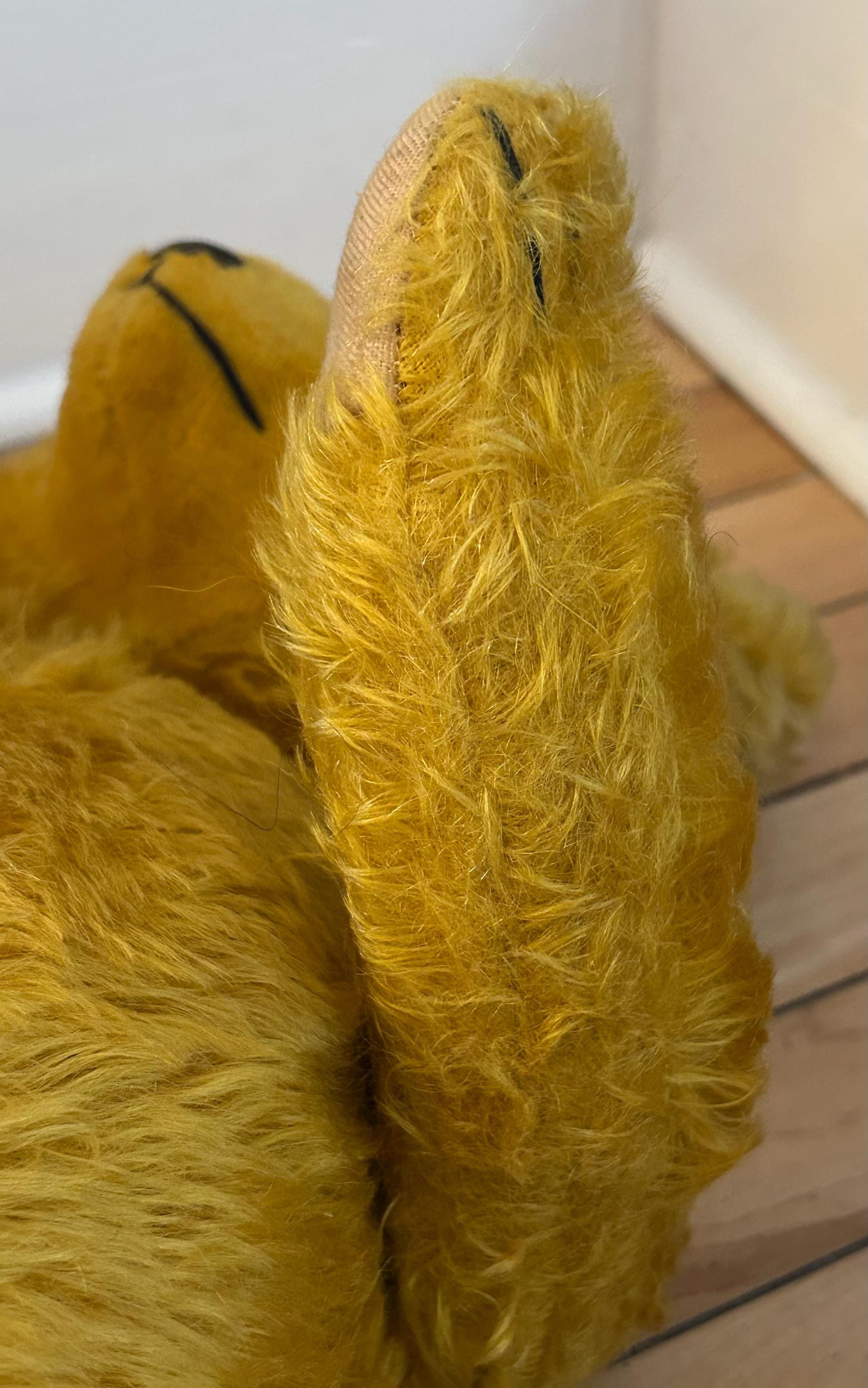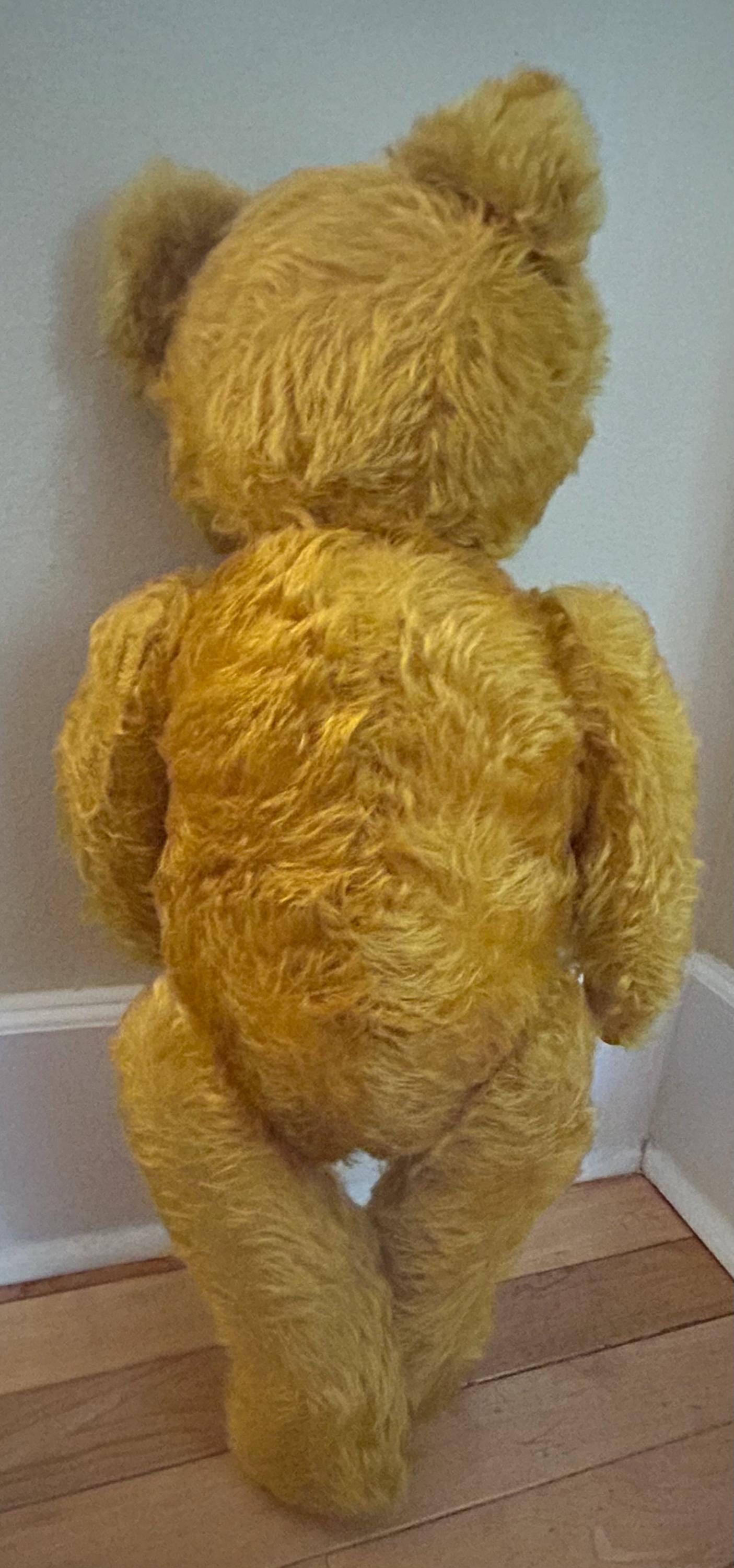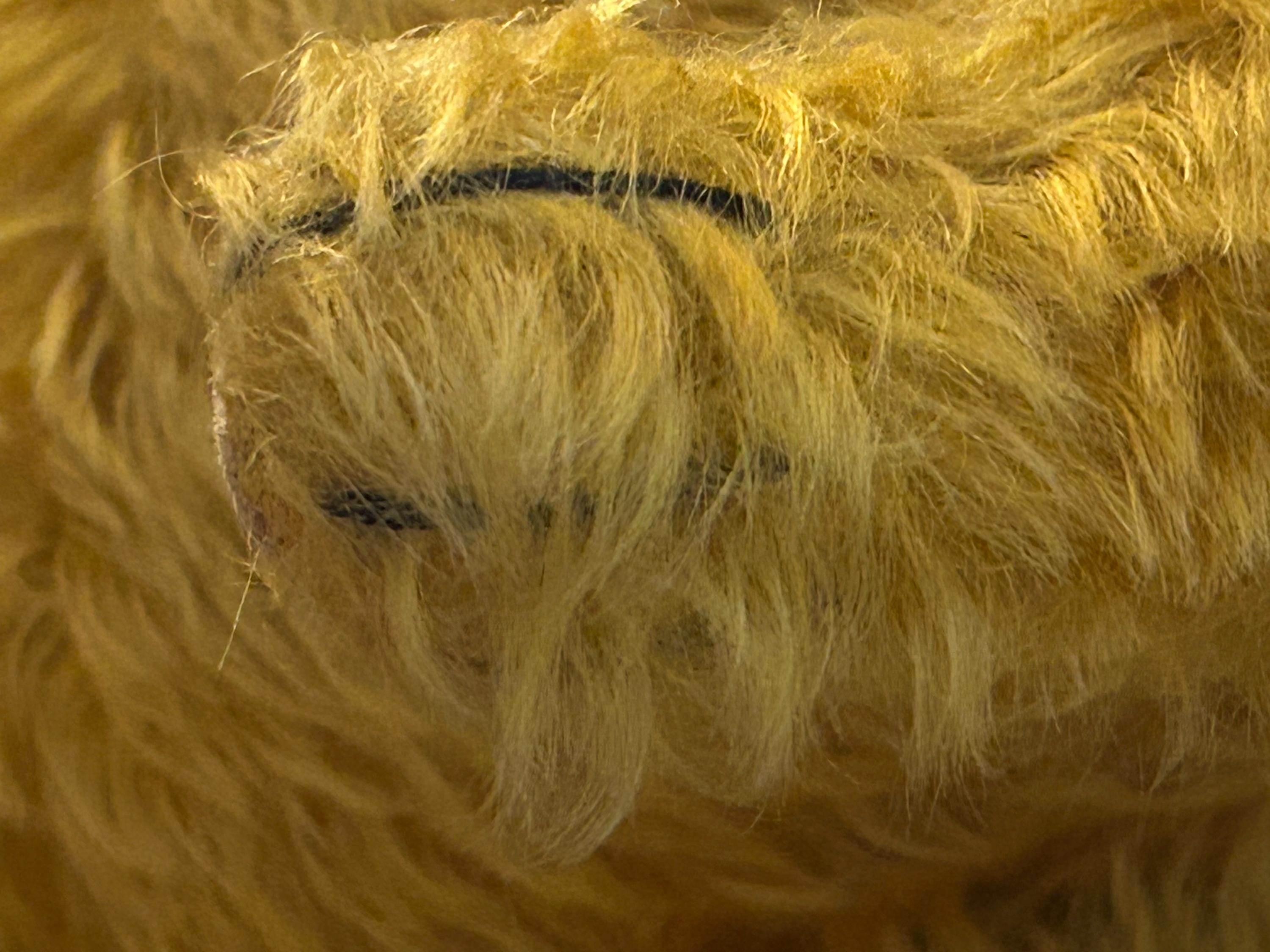 *****Condition: Please note that the bear has a non-working tilt growler. Some wear to the mohair, particularly around the claws on the paws. Pads are worn almost bare, and there is discoloration, most noticeably on the bear's right paw, as seen in the last photo.