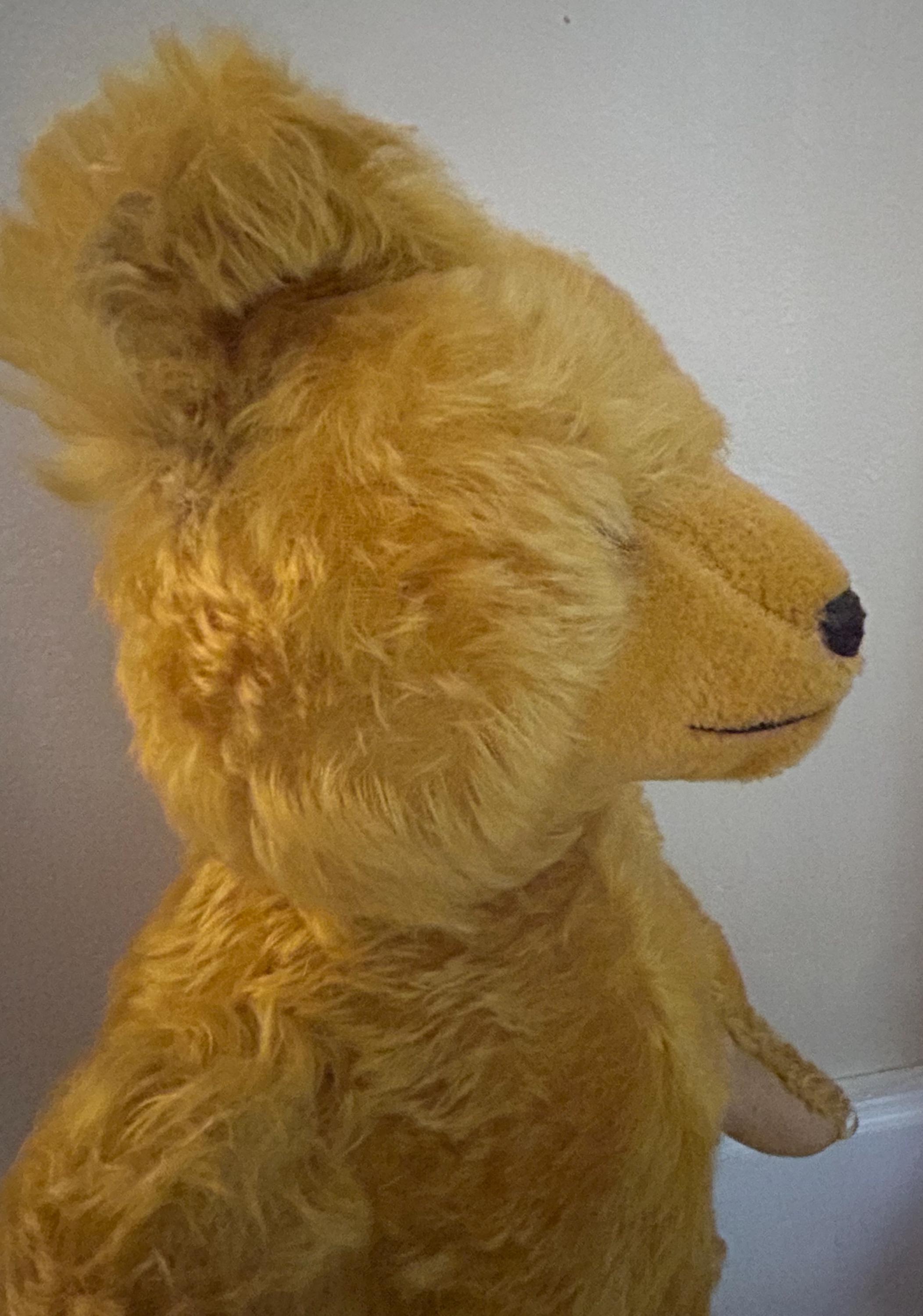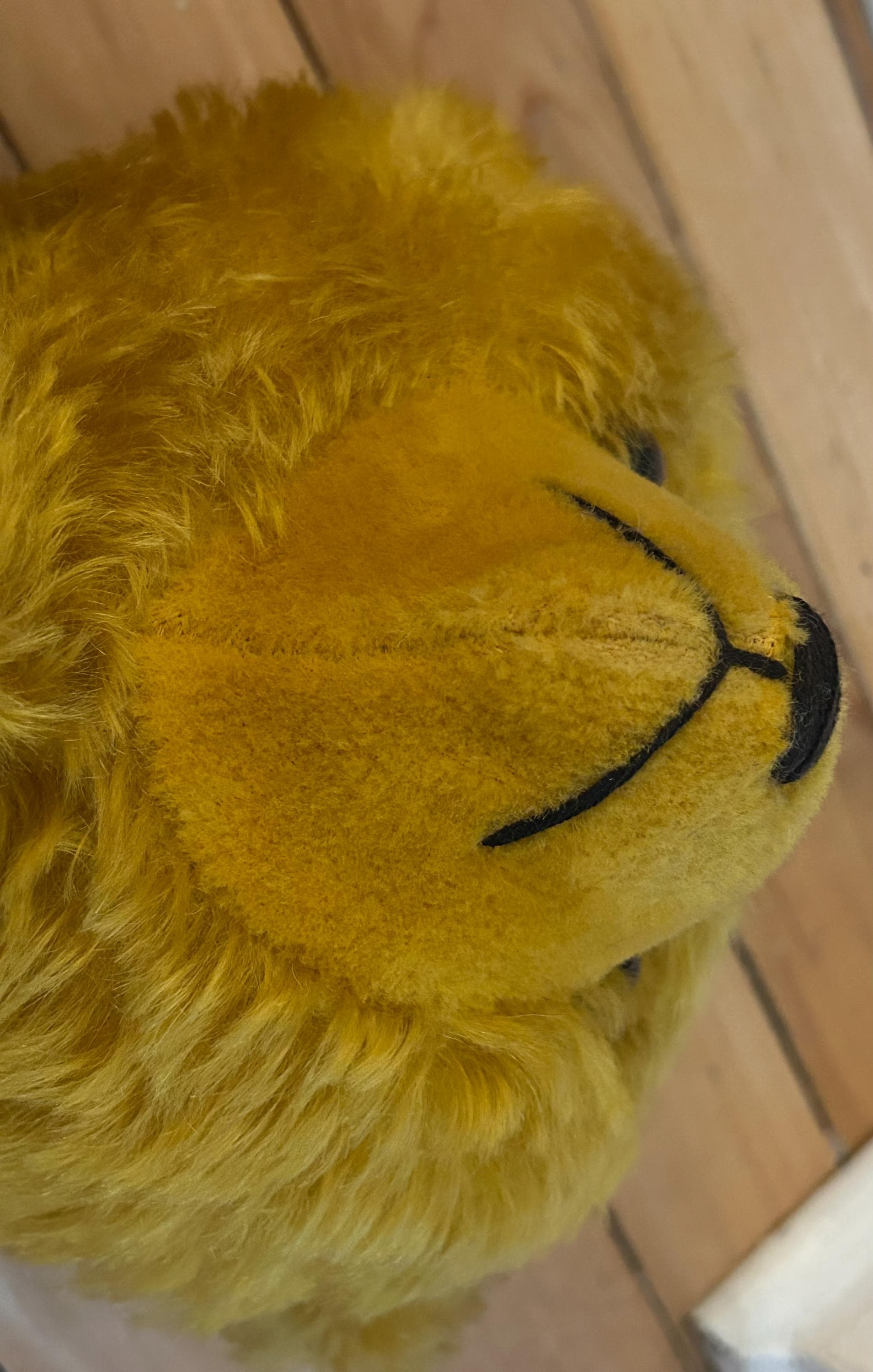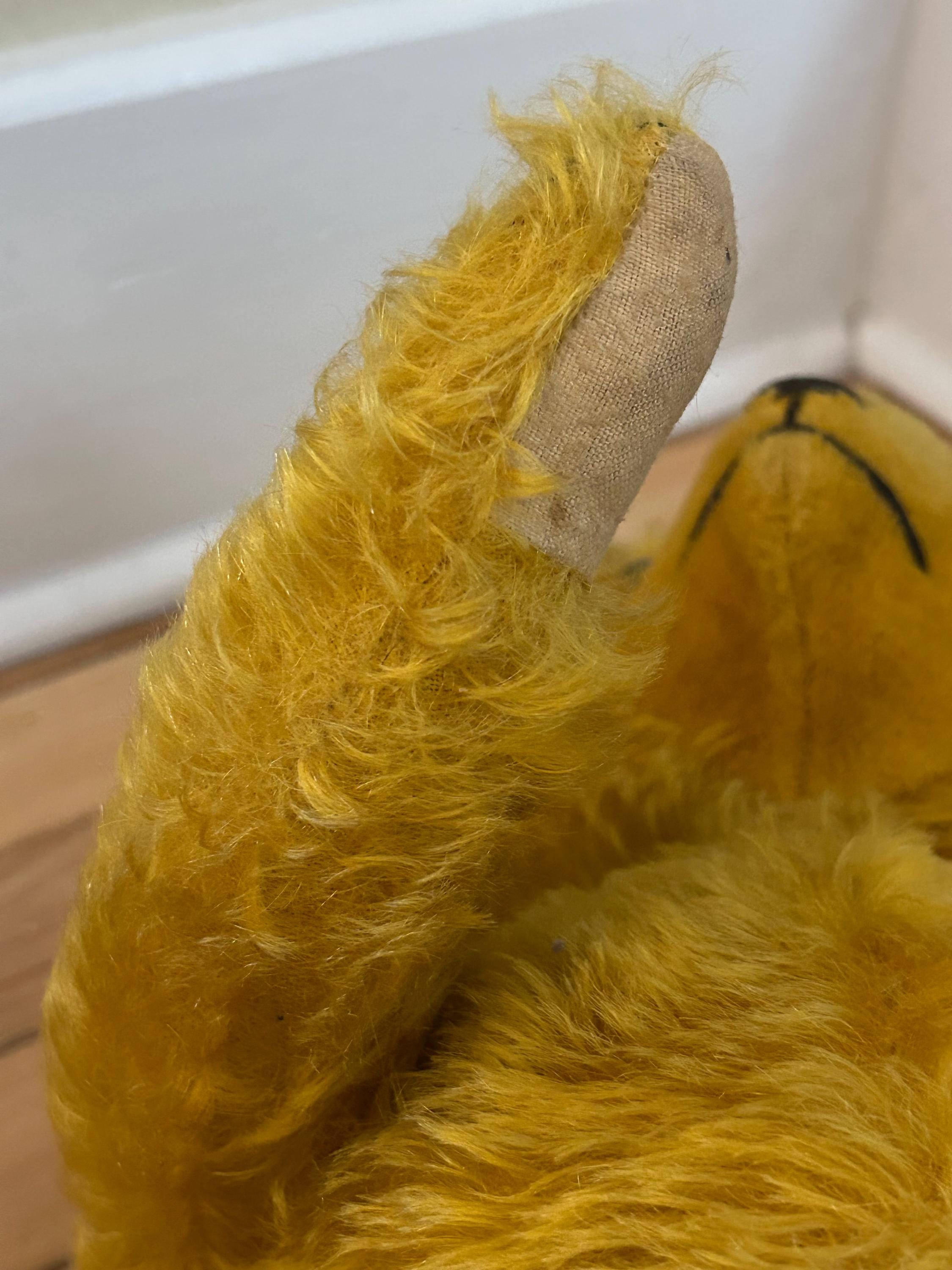 *****Condition: Please note that the bear has a non-working tilt growler. Some wear to the mohair, particularly around the claws on the paws. Pads are worn almost bare, and there is discoloration, most noticeably on the bear's right paw, as seen in the last photo.