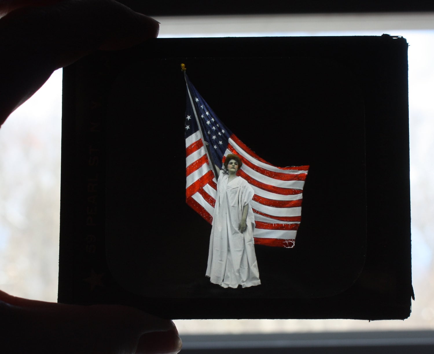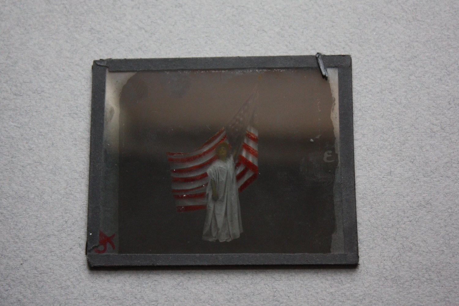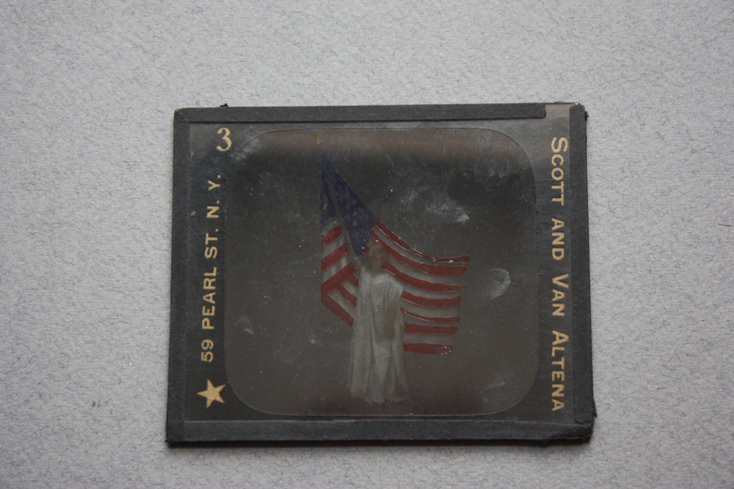 Thank you to http://www.slides.uni-trier.de/organisation/index.php?id=1001354 for the information on the firm of Scott and Van Altena, who produced magic lantern slides from approximately 1904-1919. The slide has the names of Scott and Van Altena as well as their Pearl Street address in NYC.