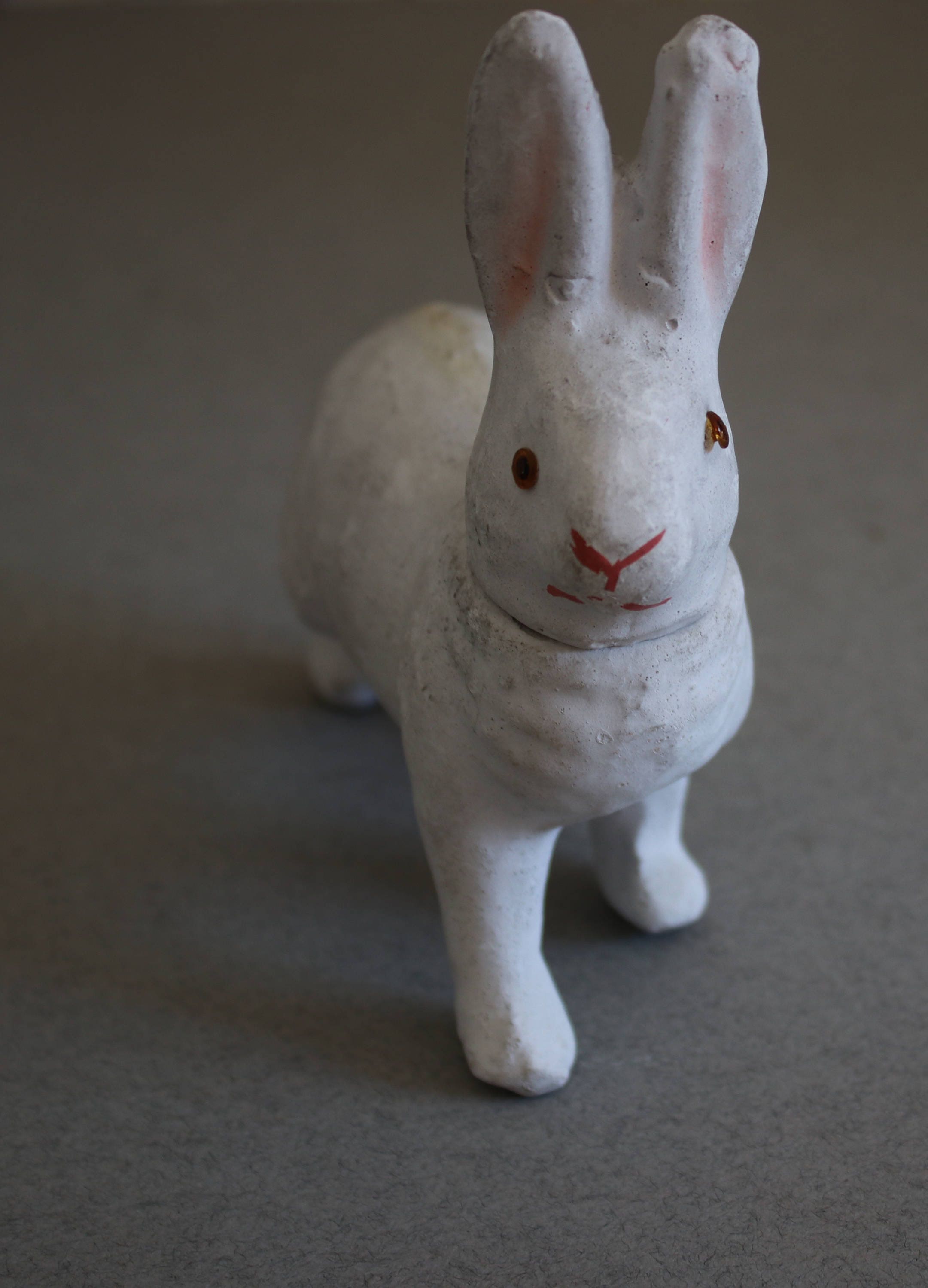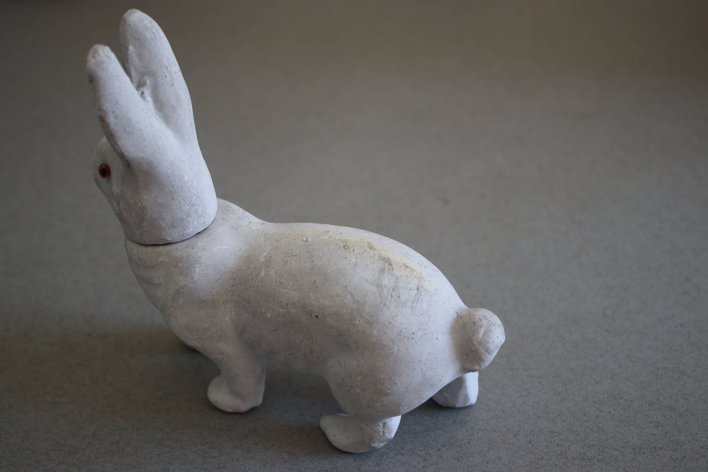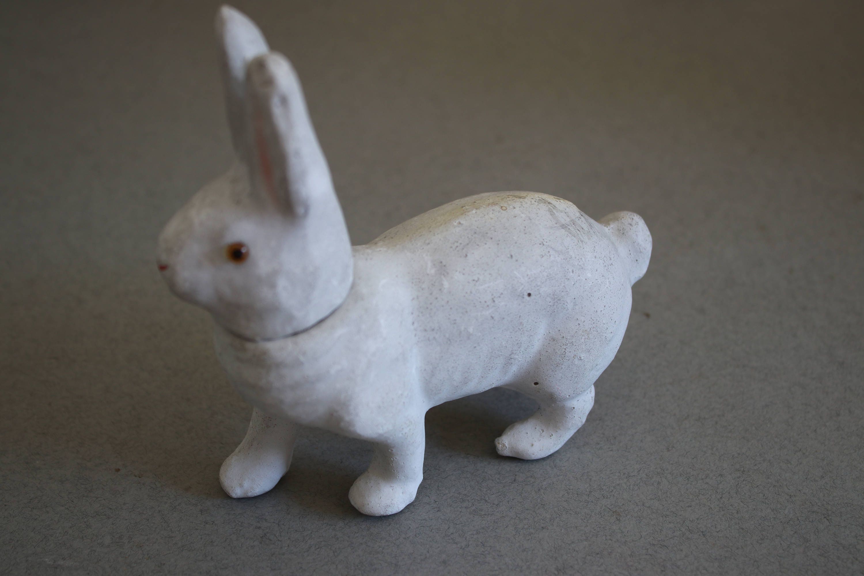 Plaster of Paris bunny rabbit candy container, made in Germany and marked as such on inner collar of head.