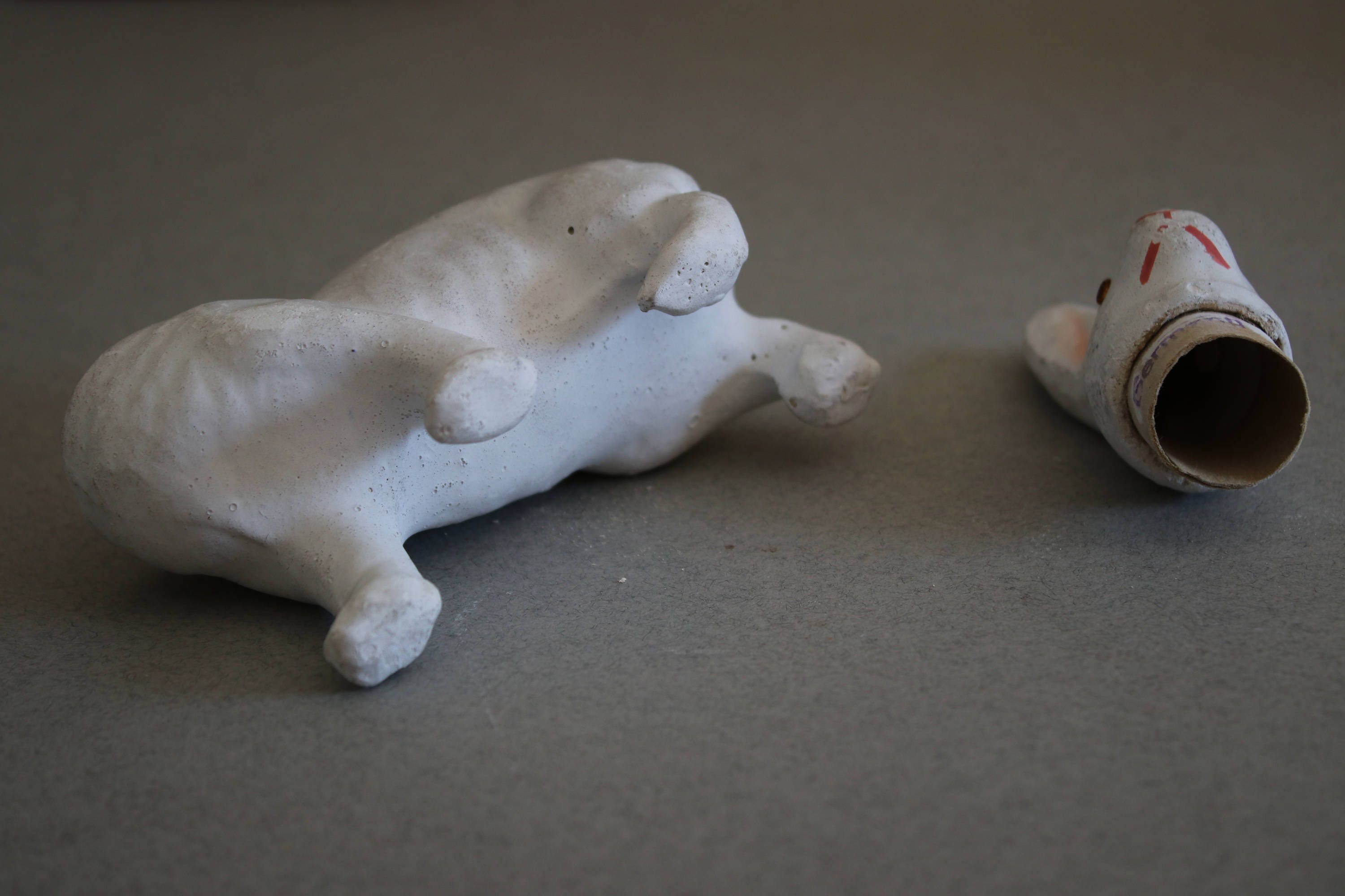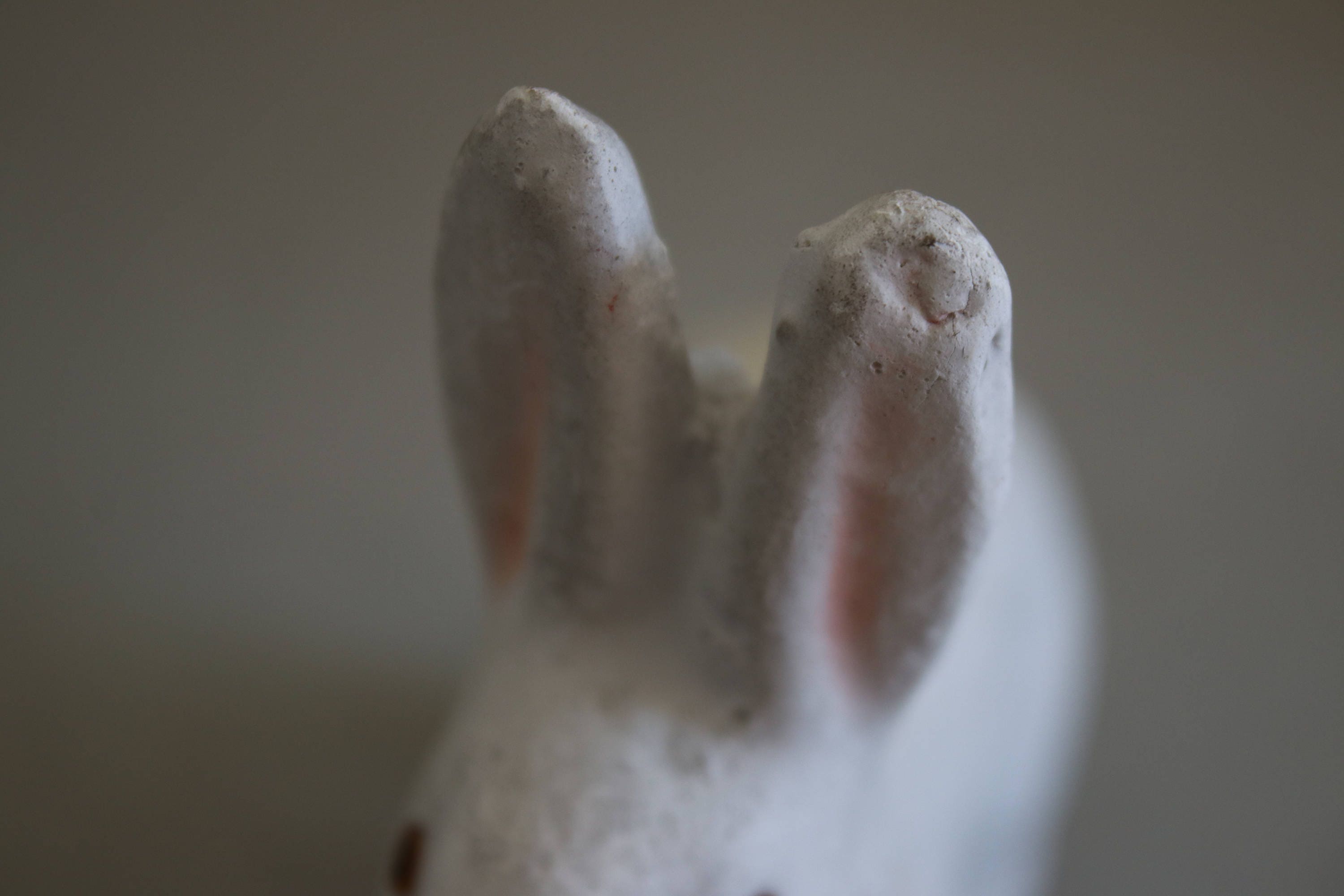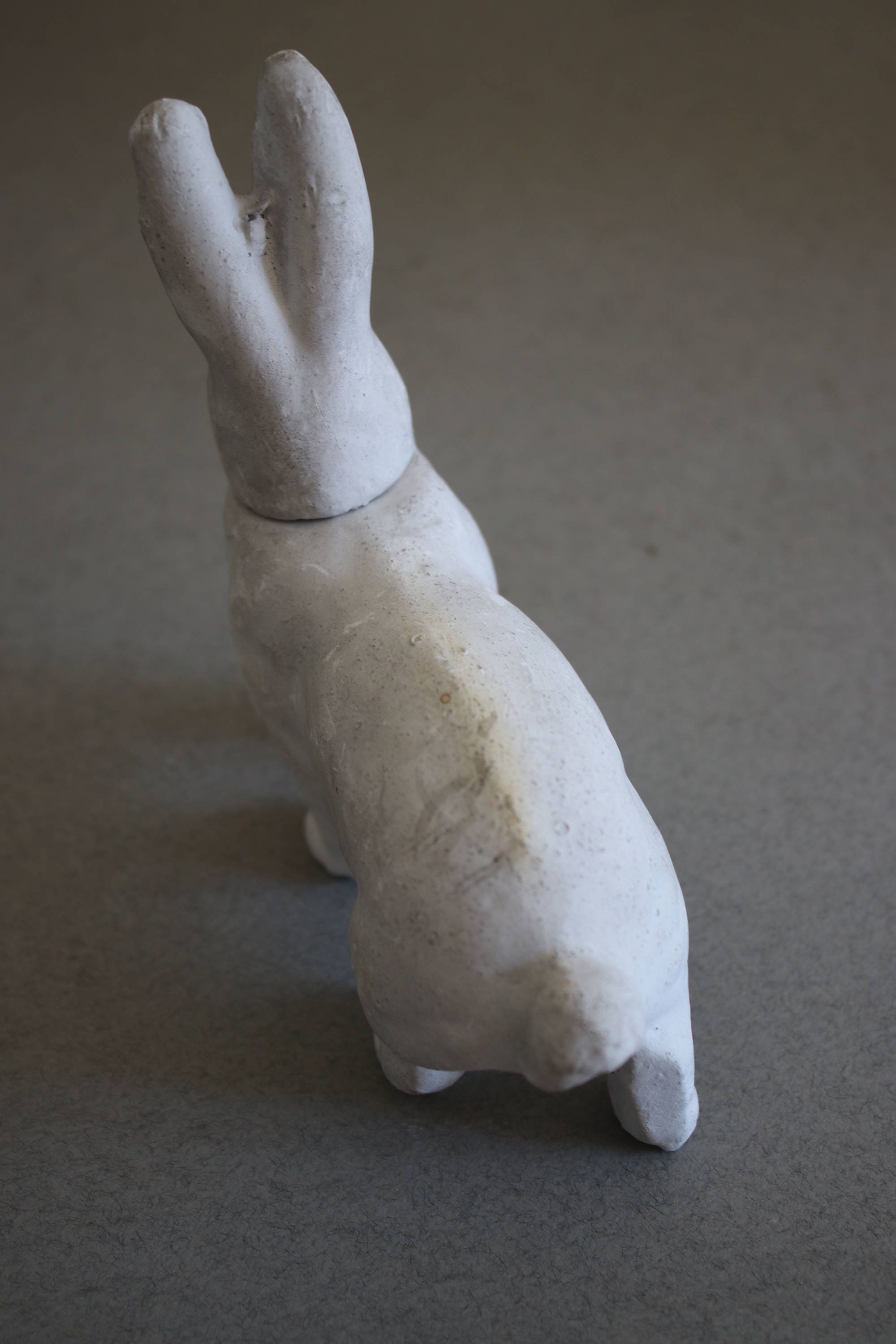 Plaster of Paris bunny rabbit candy container, made in Germany and marked as such on inner collar of head.