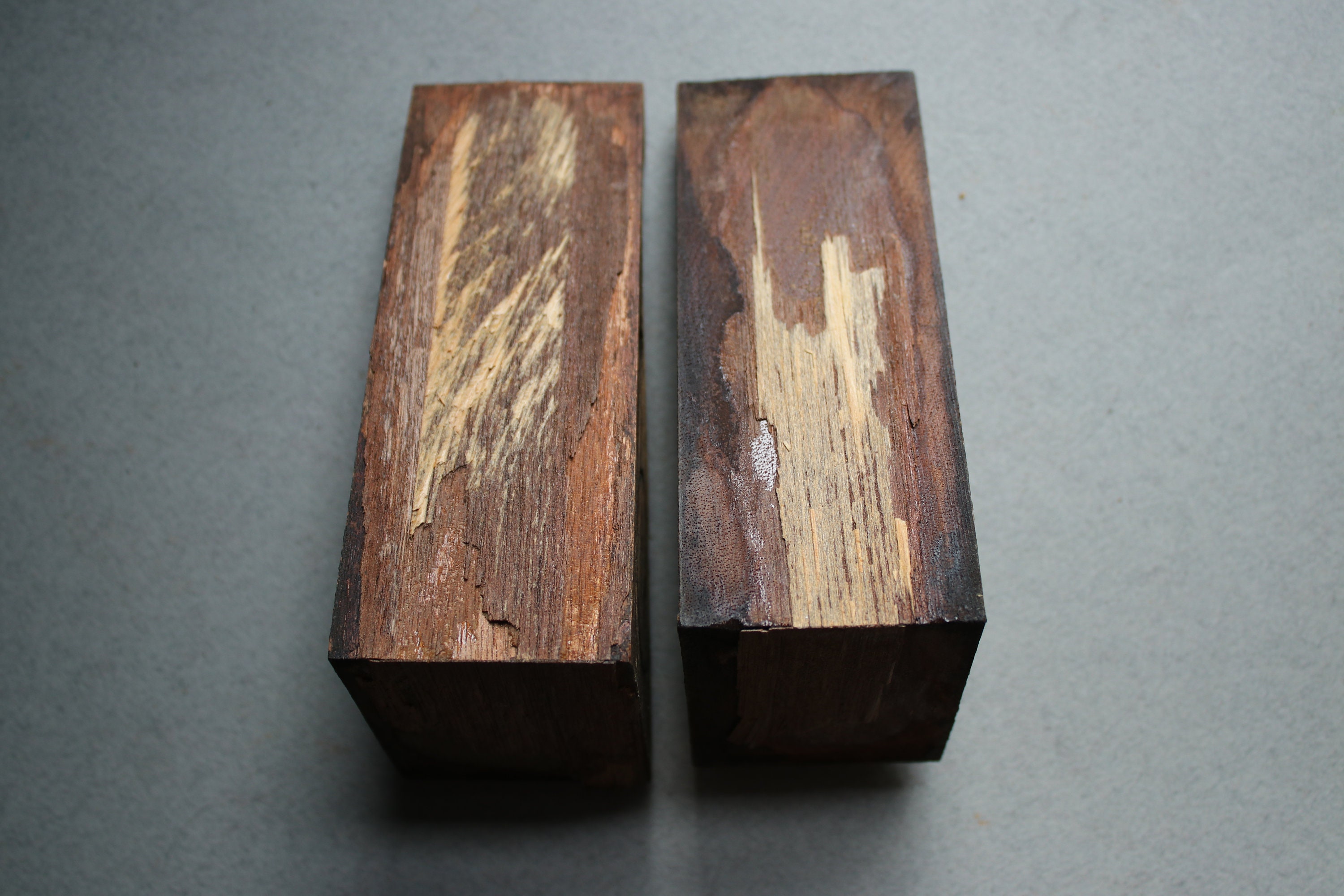The bases are both 2 ⅝" x 2". There is wear on each of the pieces where they were removed from their original placement. Also, in photo five, you'll notice a chip in the lower right hand corner of the piece on the left side.