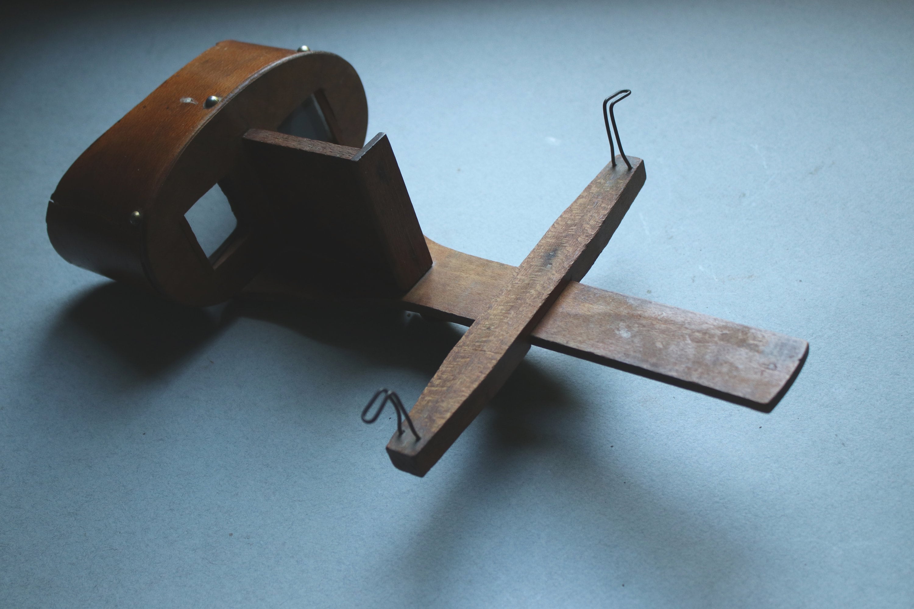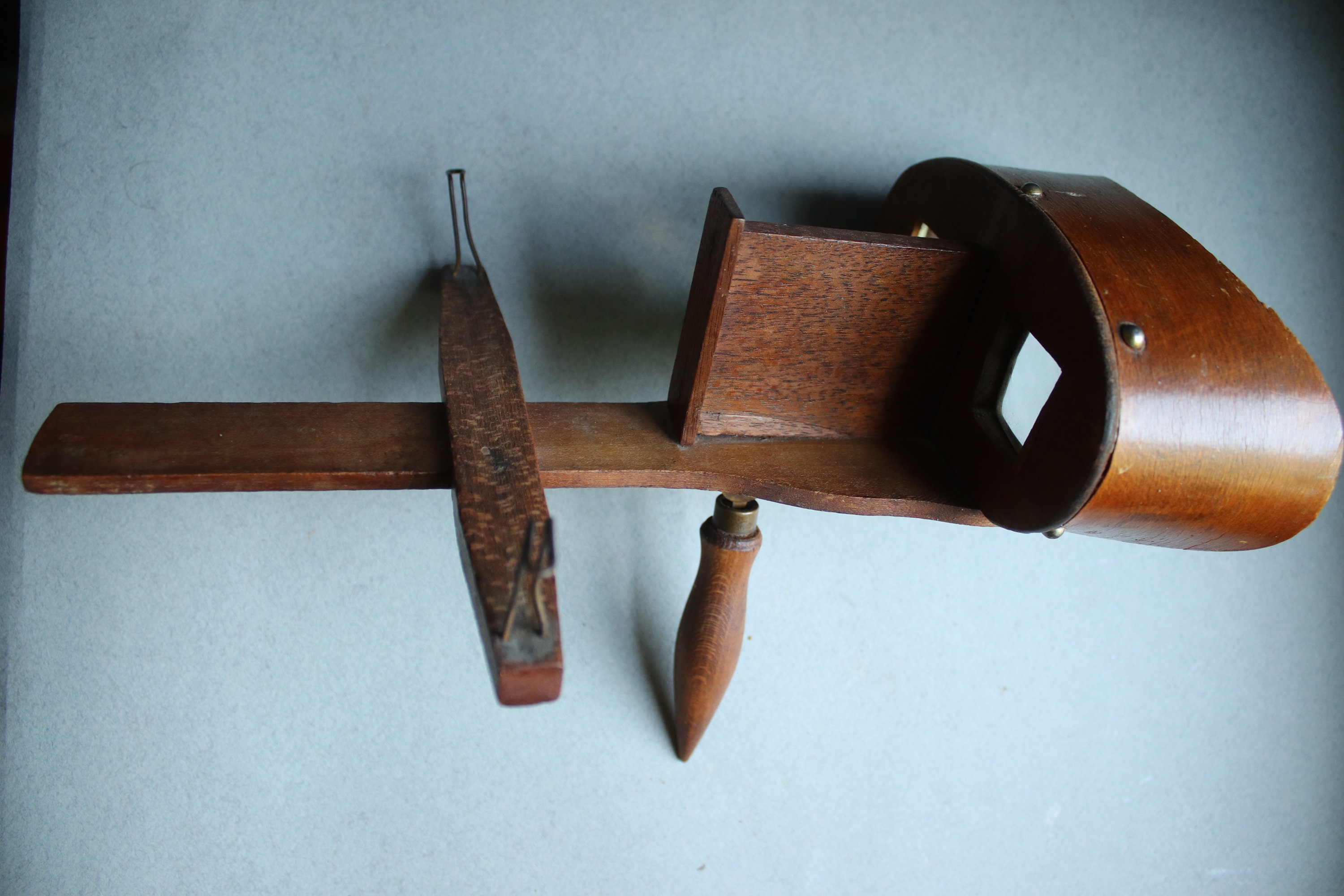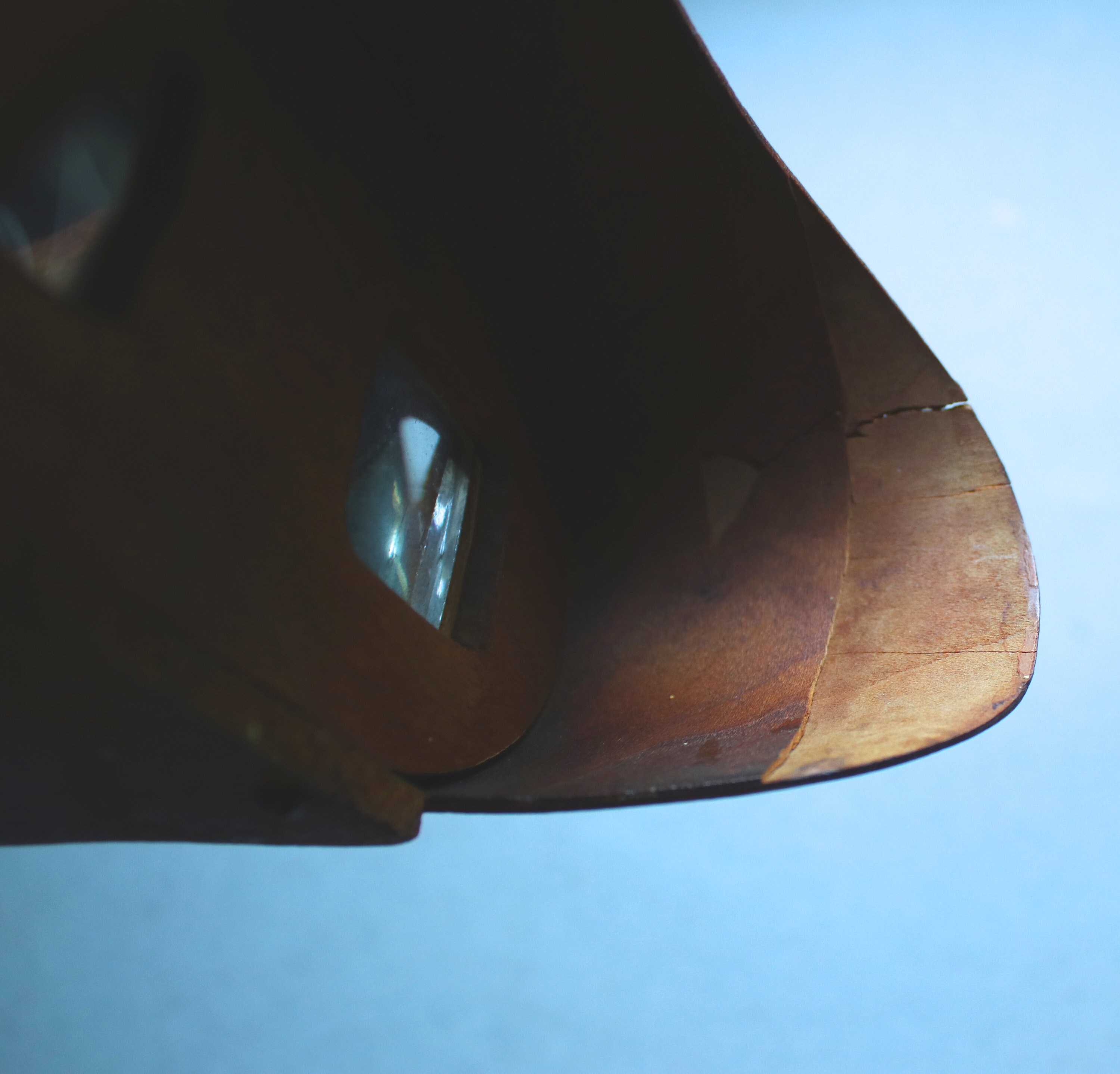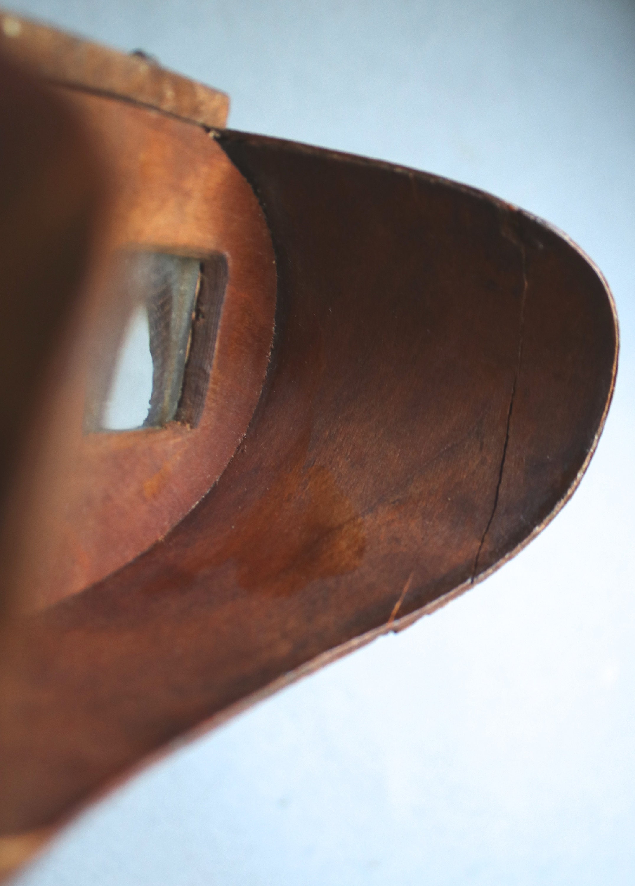 This more than likely antique, circa late 1800s stereoscope viewer is comprised of wood and metal parts. It measures approximately 12.5" in length and has two reasonably clear magnifiers through which to view stereo view cards. I'm including one card in this sale.