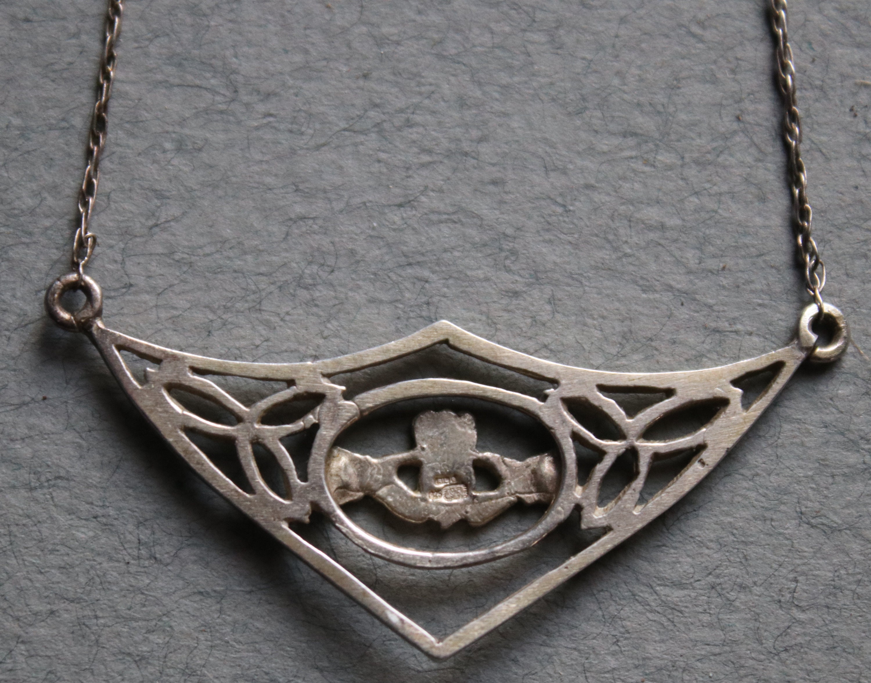 As seen in the third photo (Please use the zoom function.), the pendant is stamped with what looks like RIL, another unidentifiable mark, 925 and scales with 925 in the center. According to London's Assay Office: