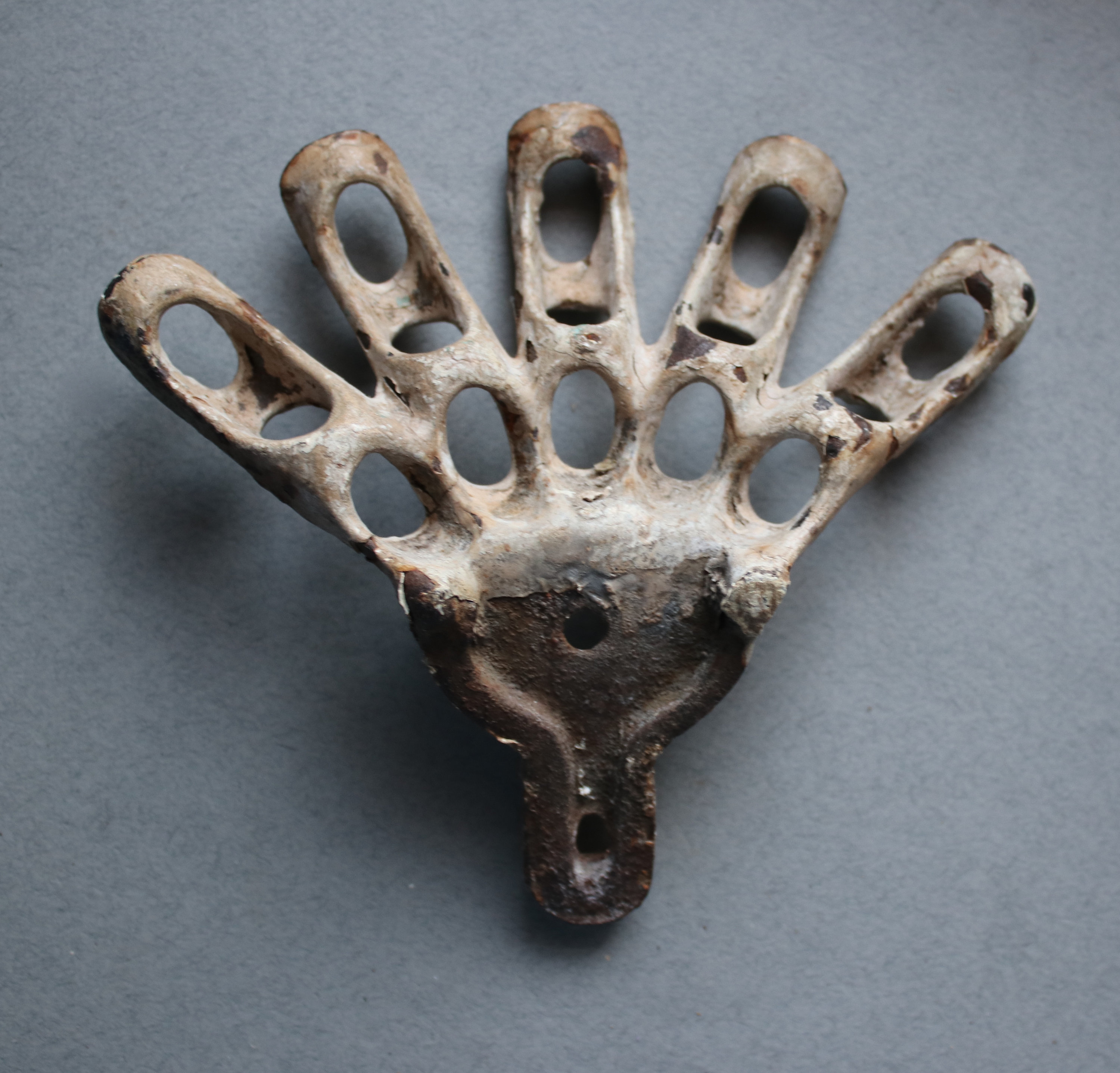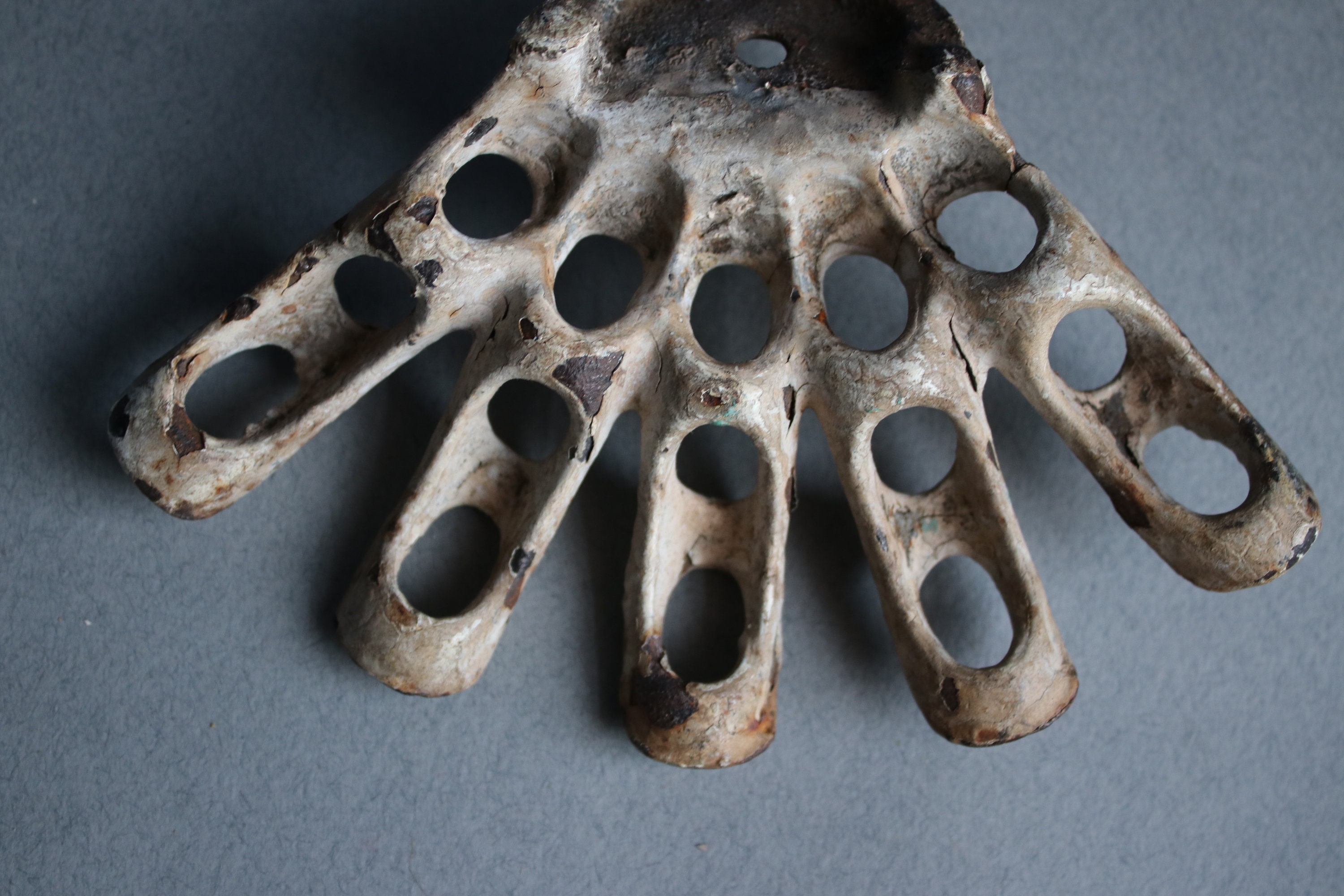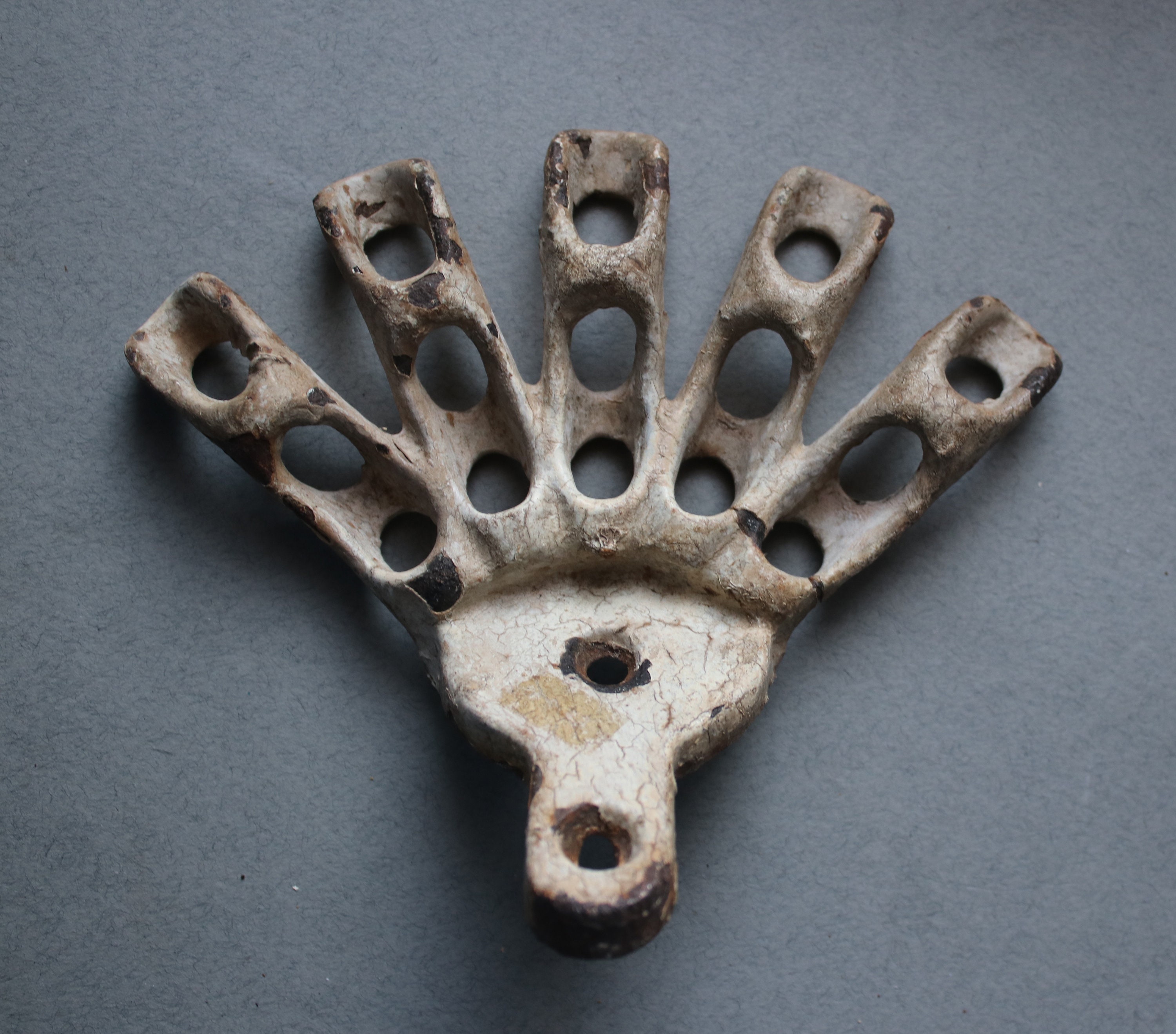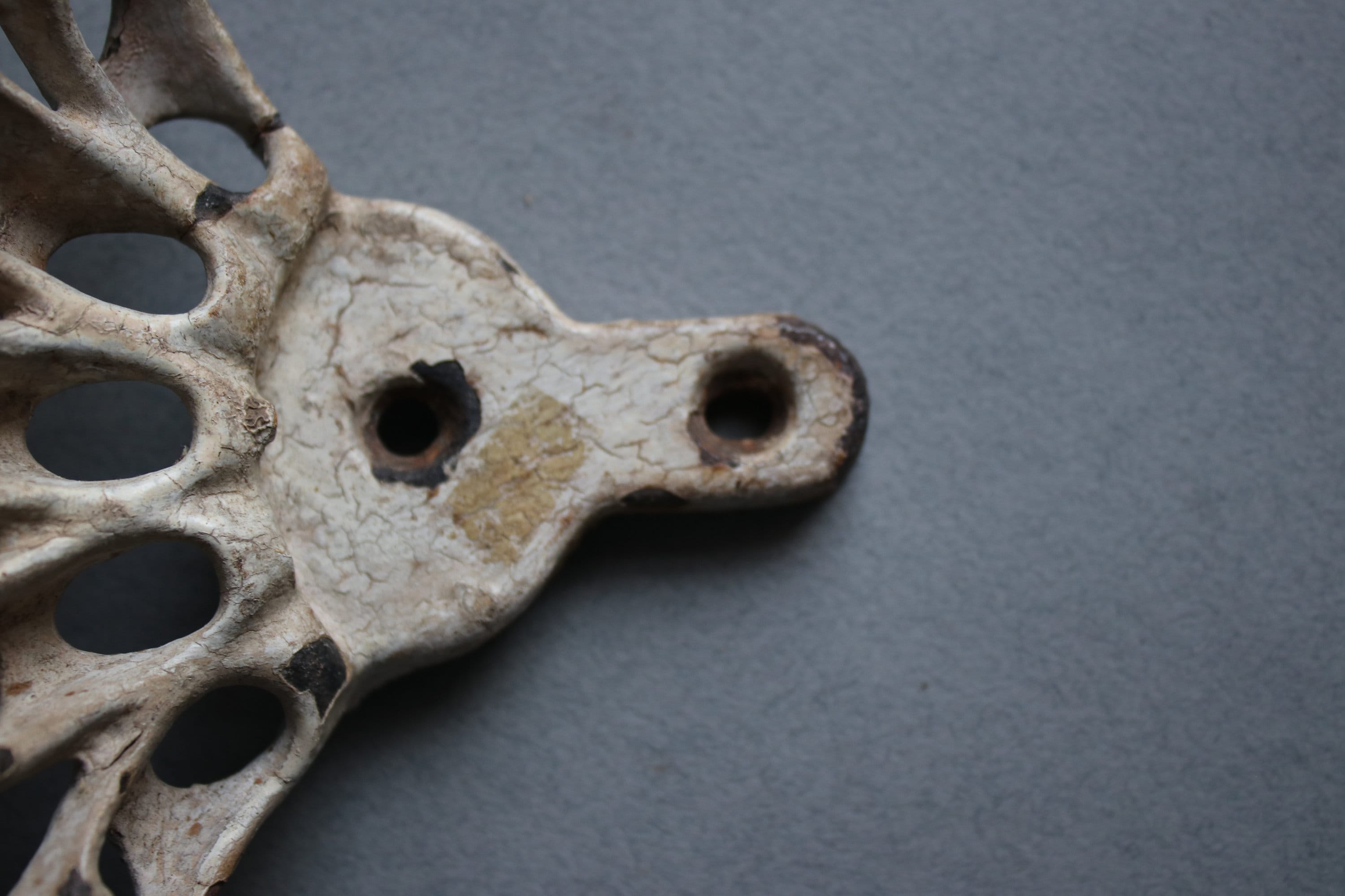 As to age, today's bracket construction is usually steel or plastic. Based on this as well as the wear and patina of this holder, this piece could very well be early 1900s or even late 1800s, but since I am not certain, I am dating it as being simply vintage. Please note the paint loss and general all over wear. Do let me know if you'd like more photos as I'll be happy to oblige.