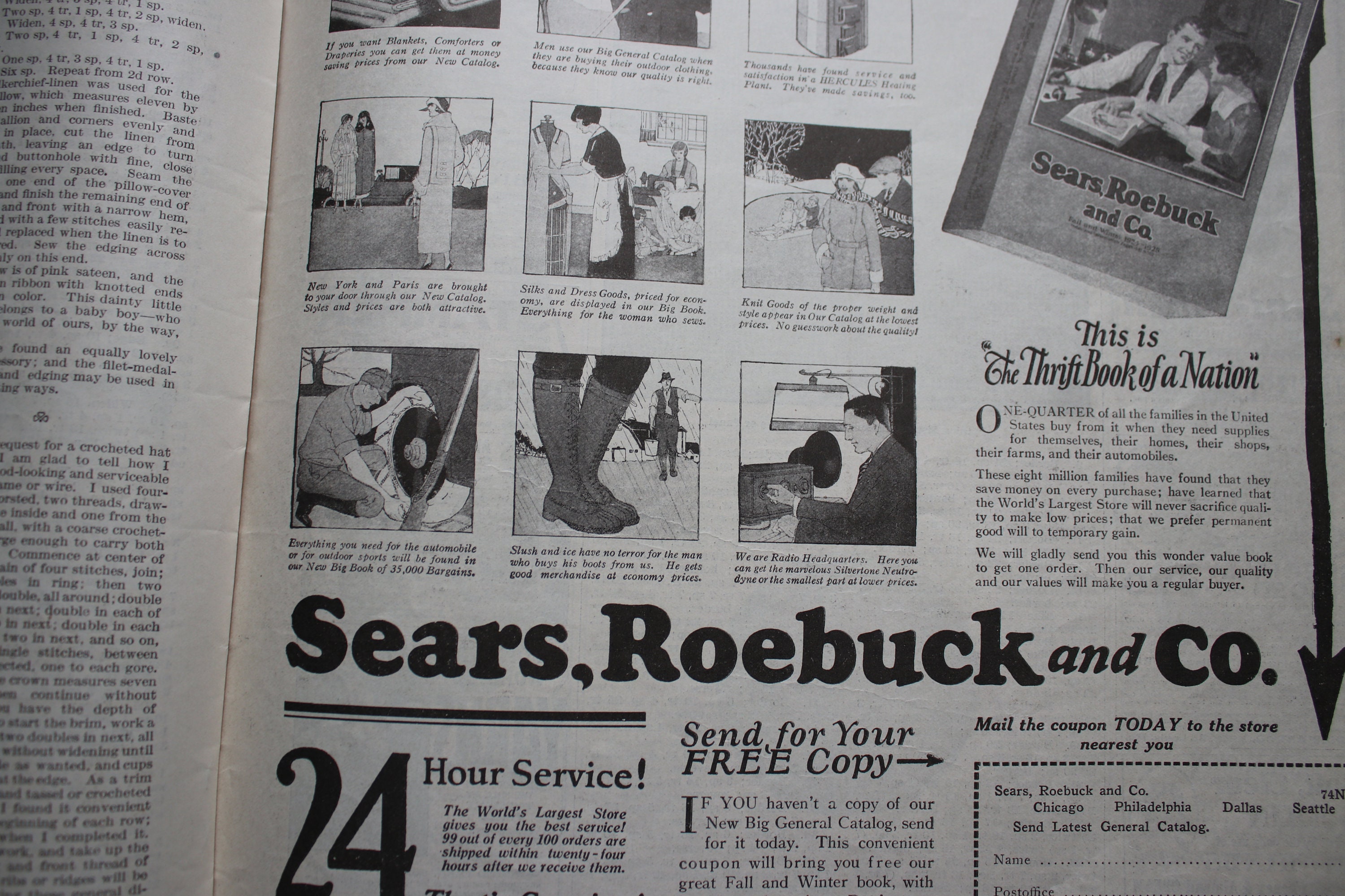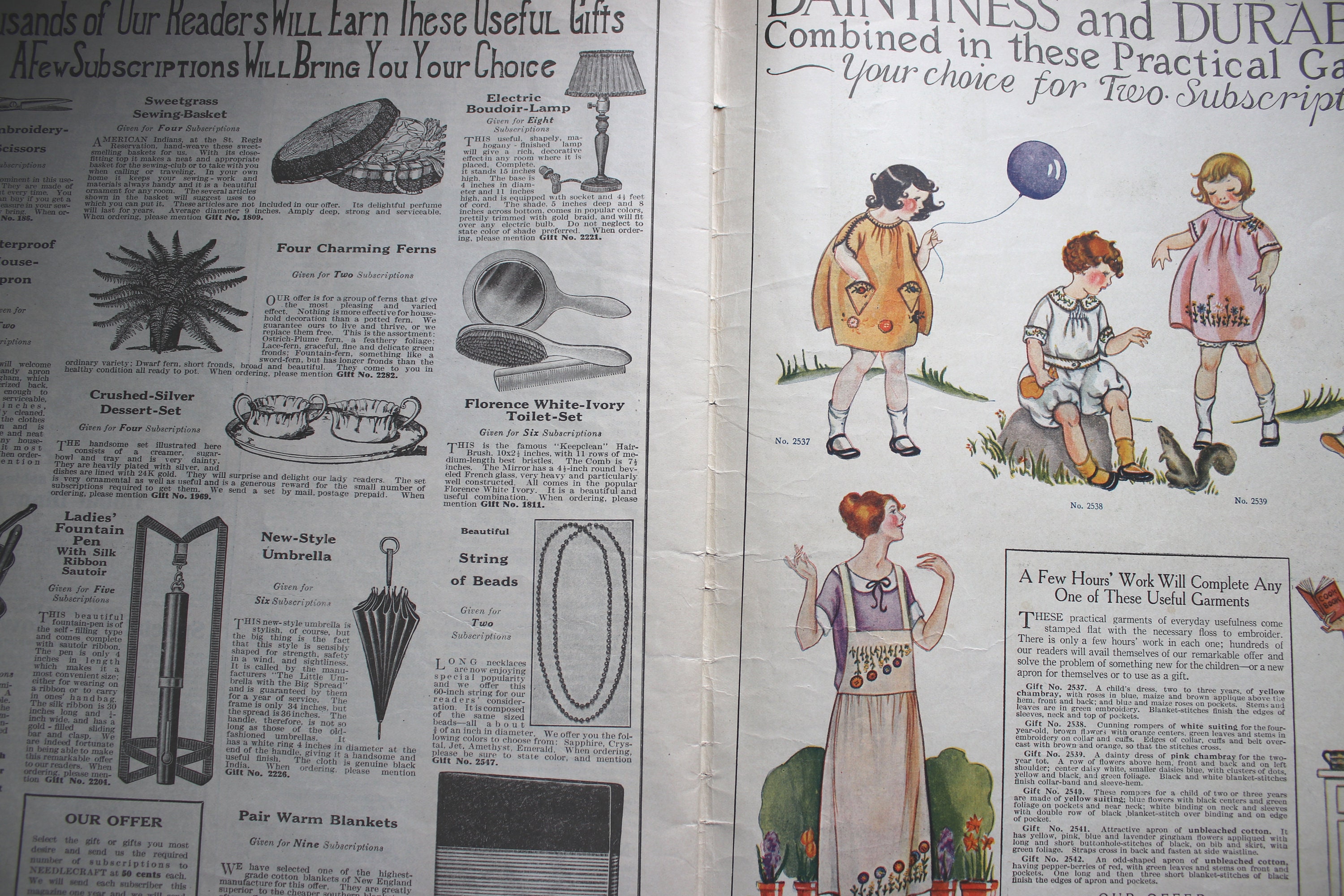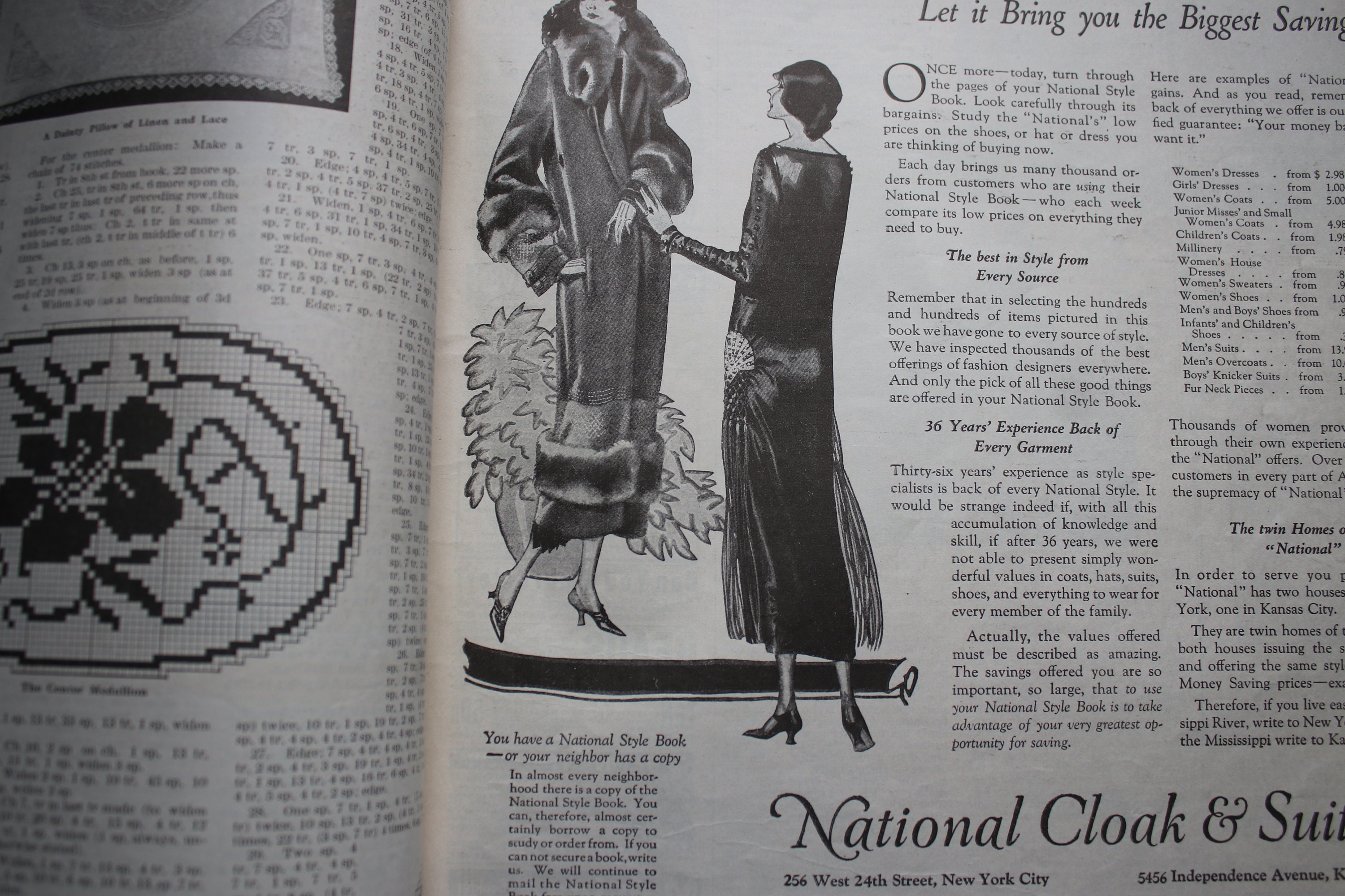 This October 1924 Needlecraft Magazine has 48 pages, counting the front and back covers. Pages 5-6 have a tear on the edge that is approximately 1" across horizontally. The cover has light soiling, and there is some light, dog-earing of page edges. Other than these issues, the magazine is intact and unmarked and contains all its pages.