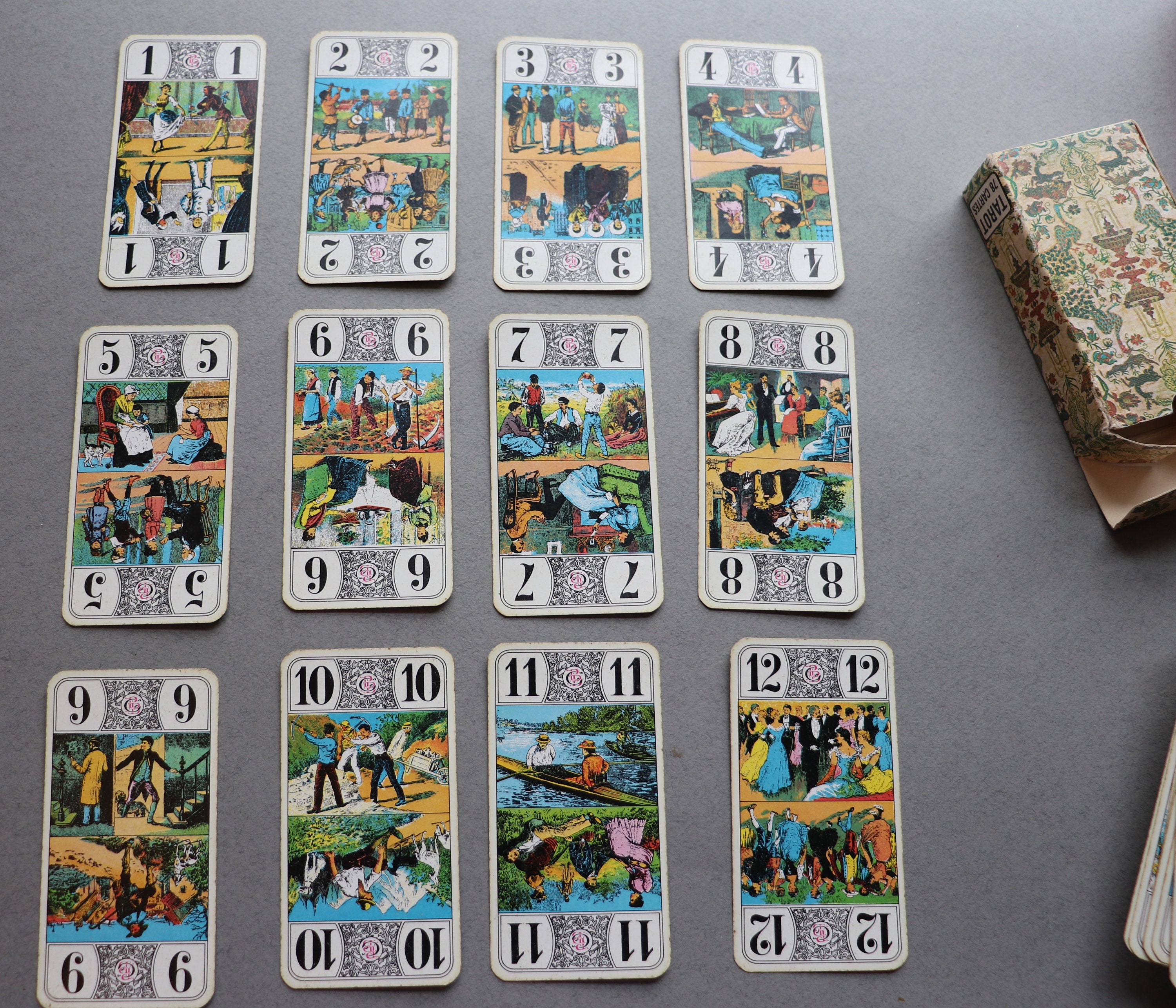 **This is not the tarot one most associates with divination or cartomancy. This is an actual game played in France. There is even a Fédération Française de Tarot, which is marked on one of the cards in blue. (See photo seven, please.) This game is taken seriously in France.