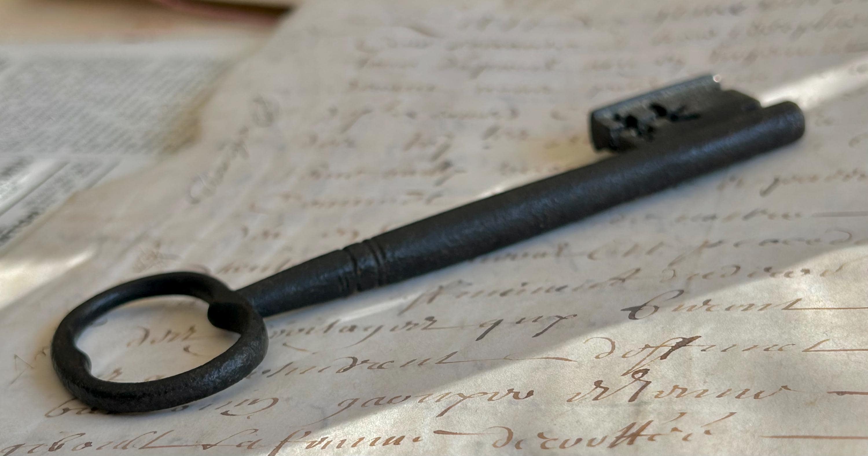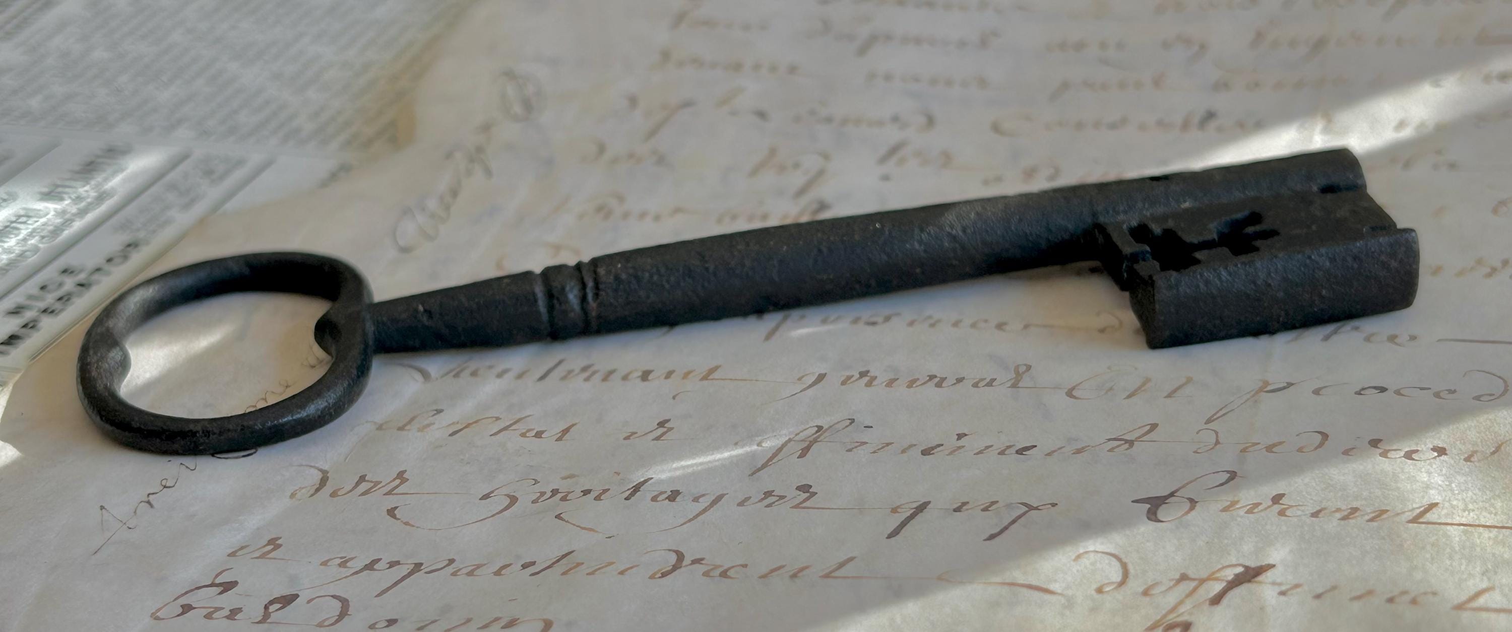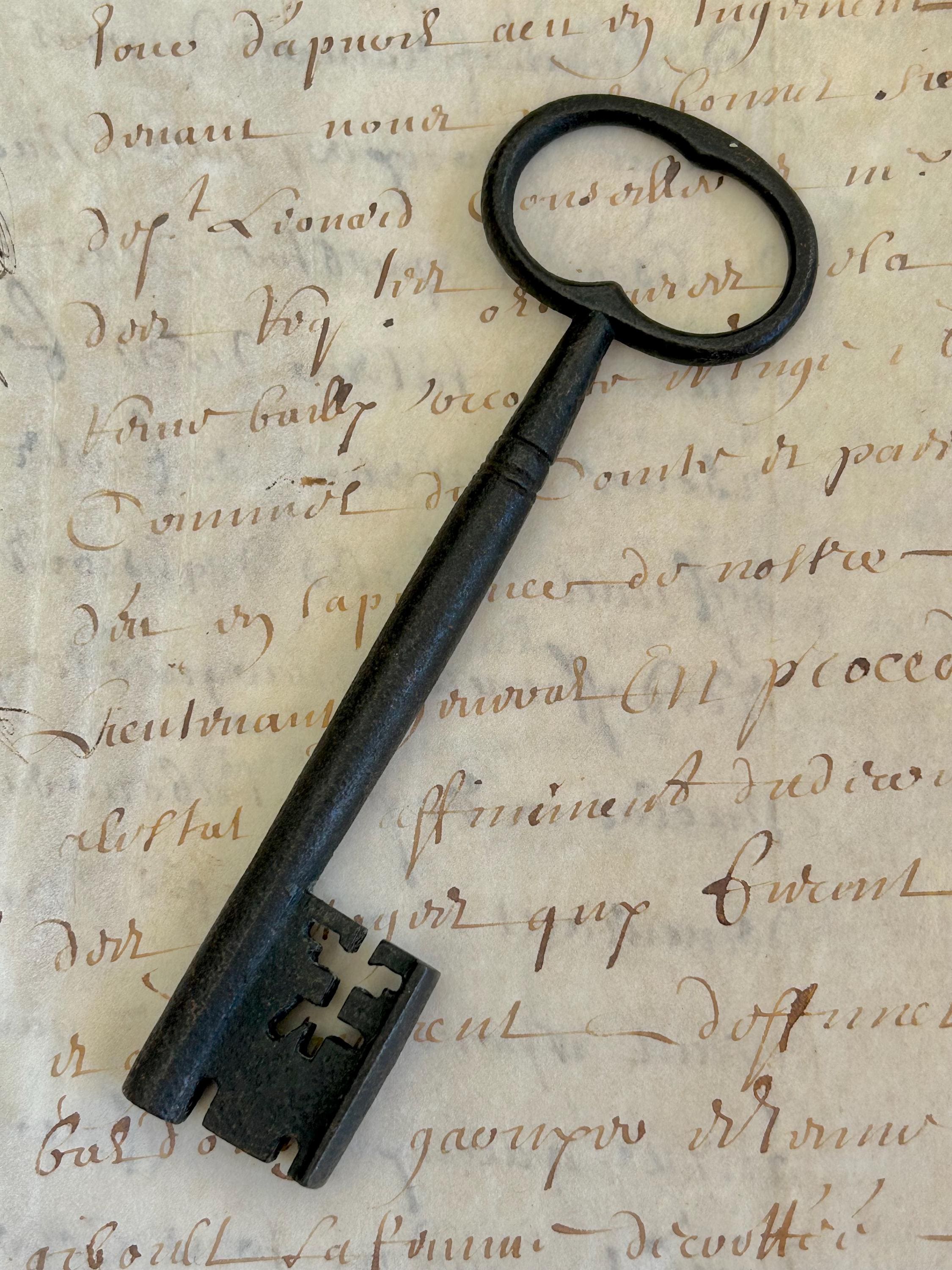 This key is from France and hand-forged wrought iron, circa 1600s. It is not a reproduction.